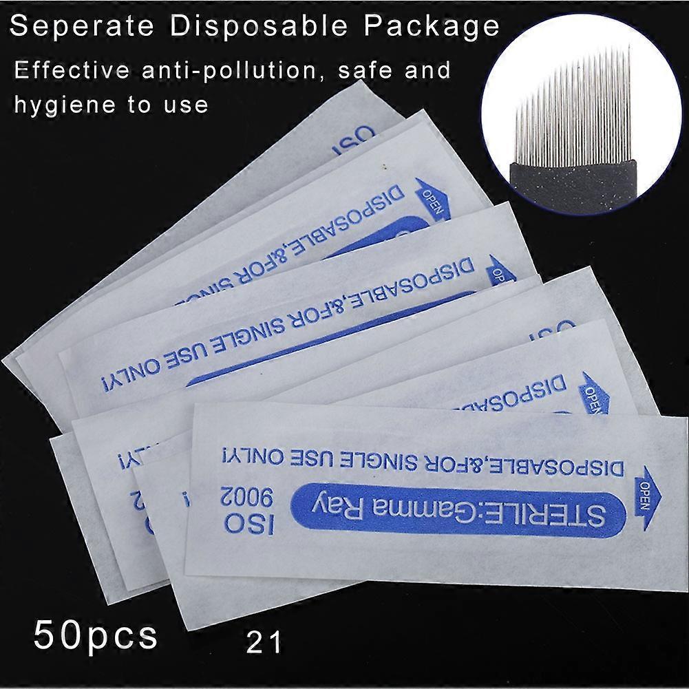 50pcs Stainless Steel Microblading Tattoo Needles 21 Pin 0.18mm