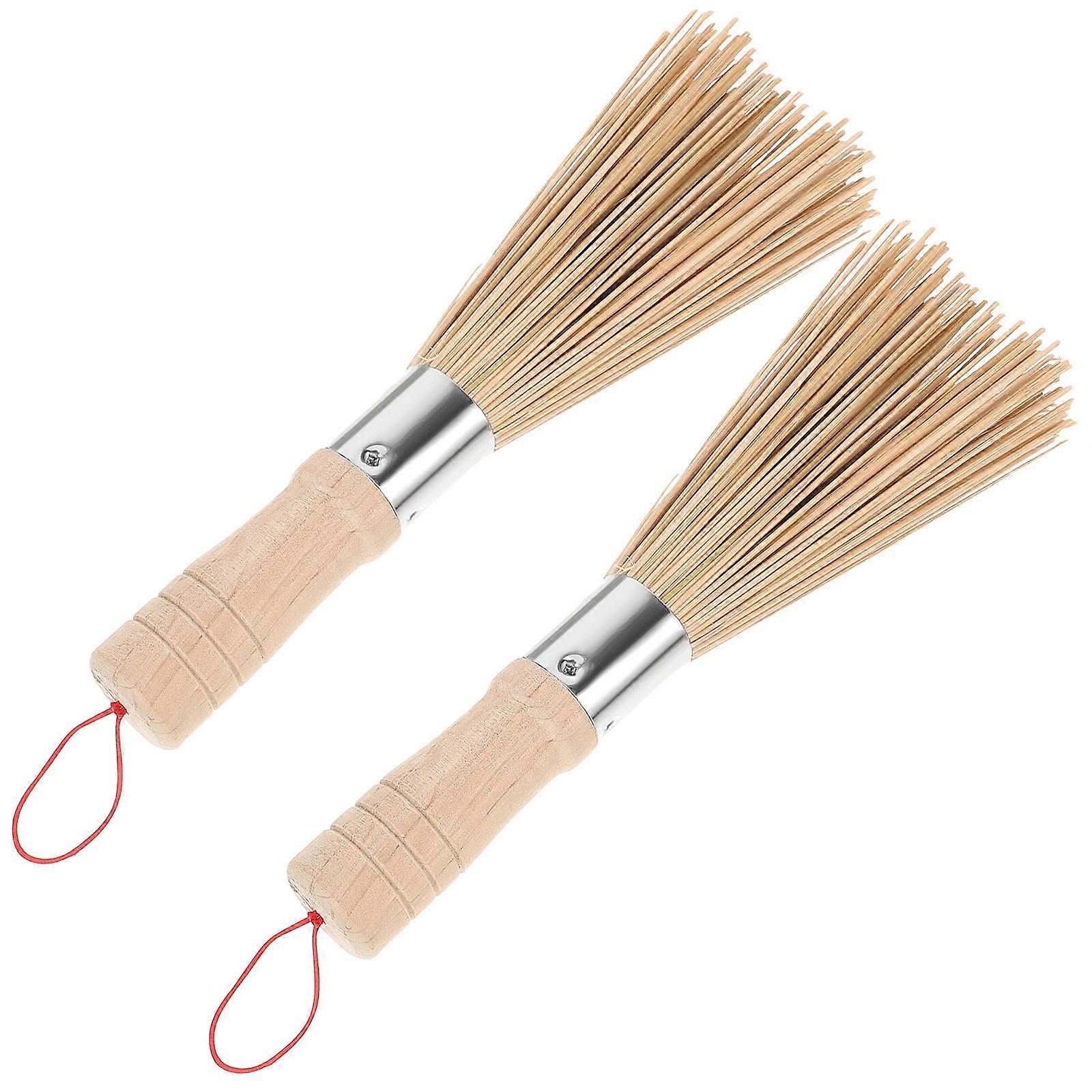 Frying Pan Brush Bamboo Long Handle Wok Cleaning for Home and Restaurant 2Pcs Beige