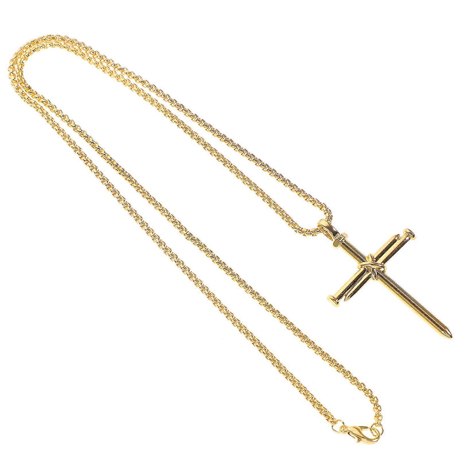 Stylish Alloy Man Cross Necklace for Man 1Pcs Golden Hip Hop Pendant