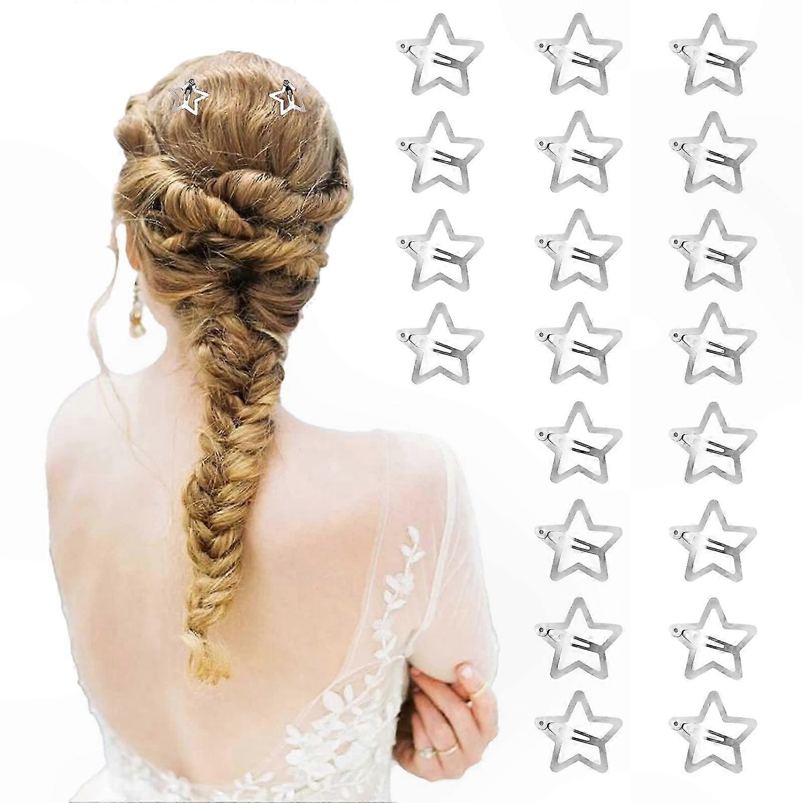 Silver Star Hair Clips, 20pcs Metal Snap Clips for Women and Girls, Stylish Accessories for Everyday Use
