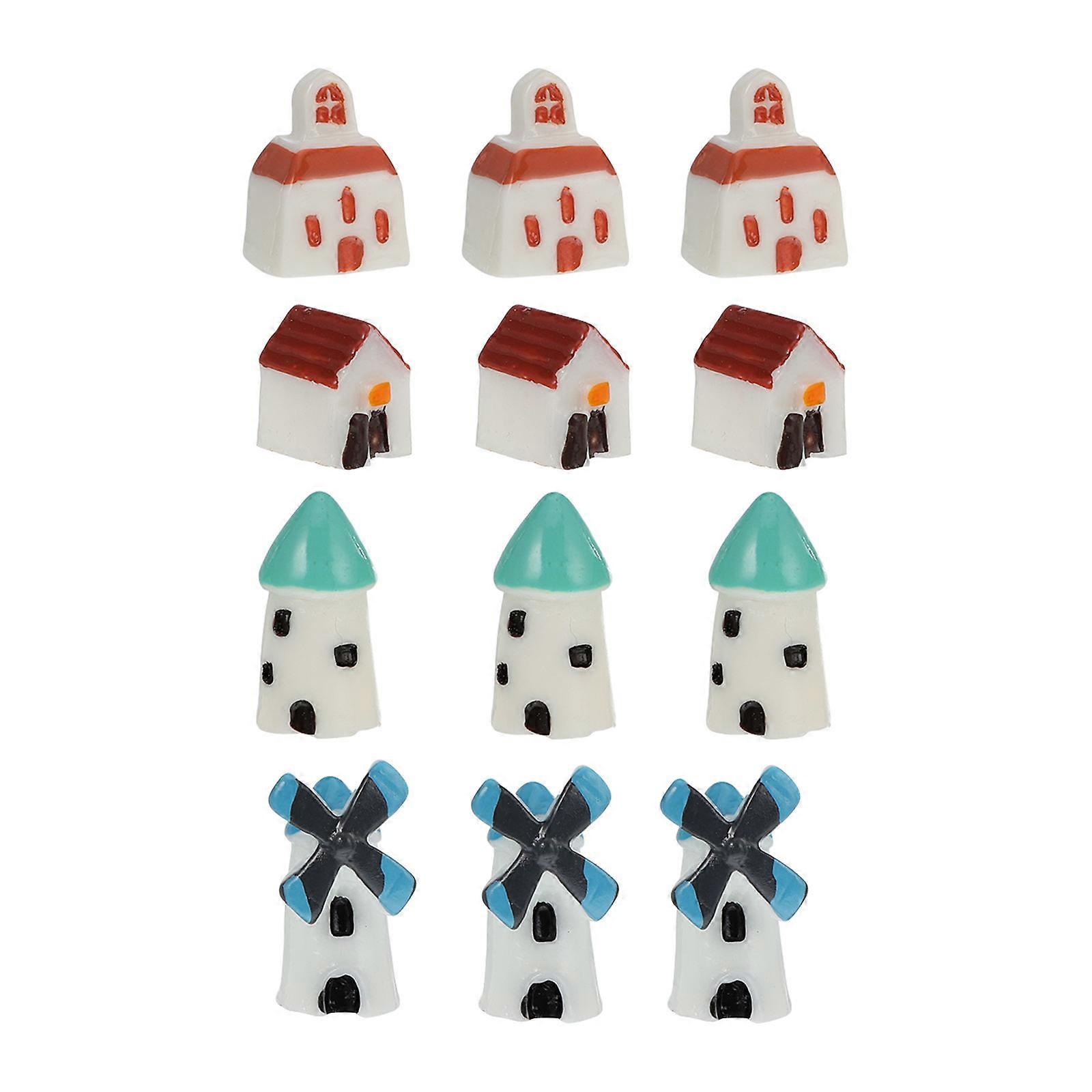 Windmill House Ornament 12Pcs Assorted Color Durable Resin Craftsmanship Model for Decoration