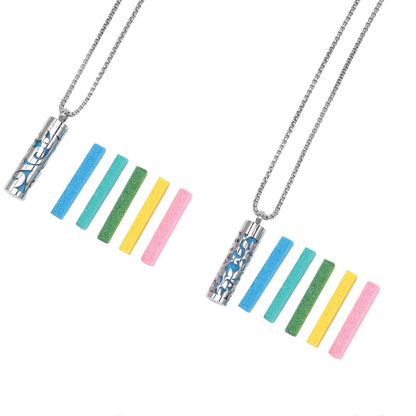 Bottle Necklace Aromatherapy Pendant Stainless Steel Oval Shape Assorted Color 3.5x1cm Stylish Men 2 Sets