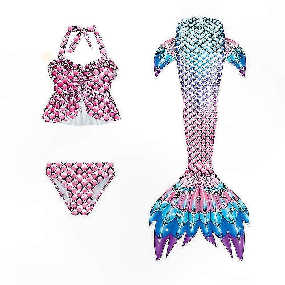 3-Piece Mermaid Tail Swimsuit Set for Girls, Fantasy Beach Costume with Bikini Top and Tail Bottom
