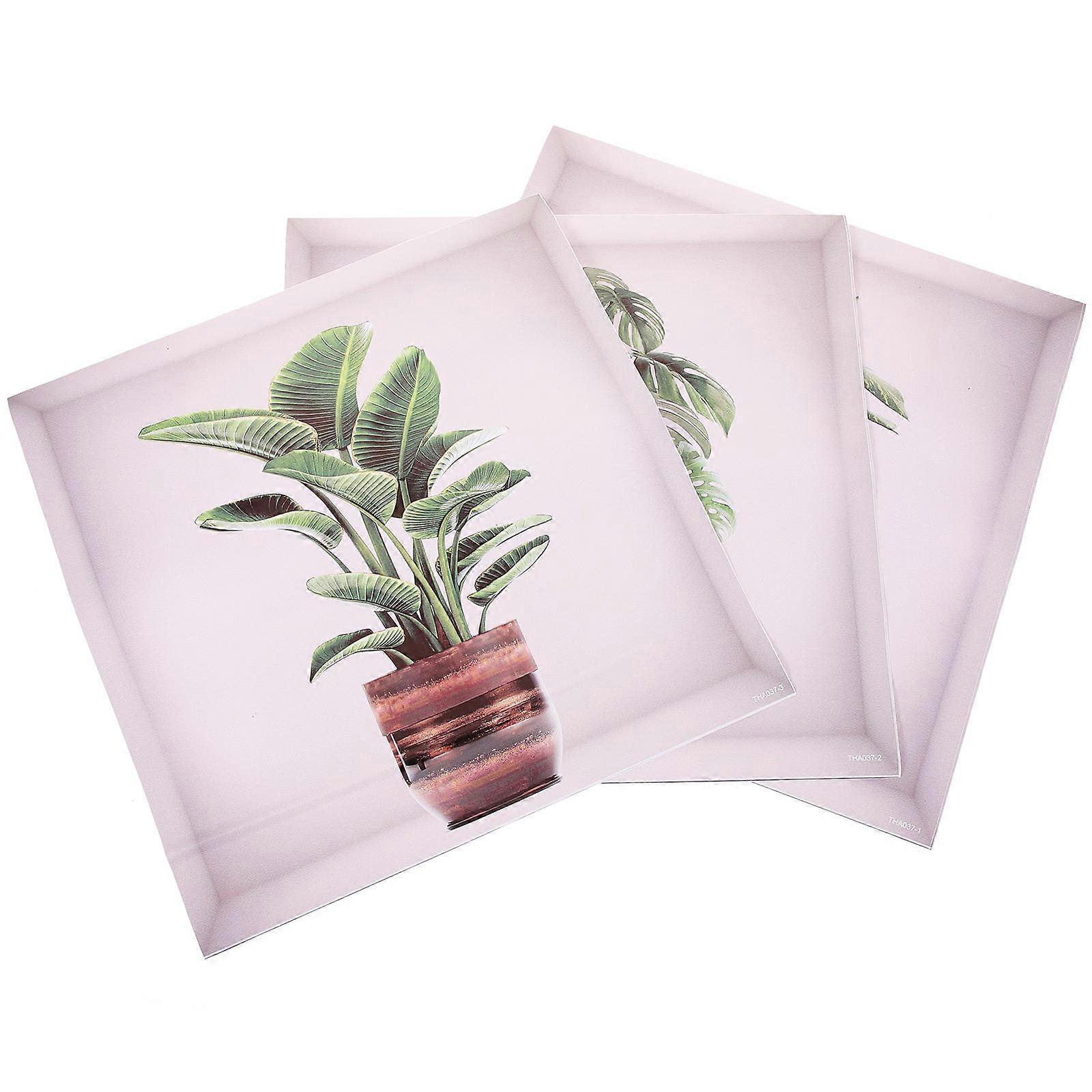 Green Plants Flower Wall Decals Background Wall Decoration Faux Window Bonsai Wall Decals For Homeowners 30x30cm 3Pcs