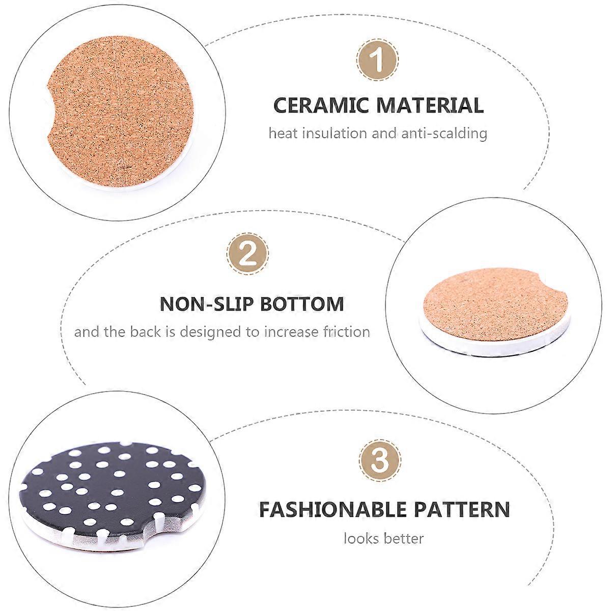 Porcelain Coaster Cup Mat Practical Tea Cup Pad Round Water Absorption Black 4 Pcs