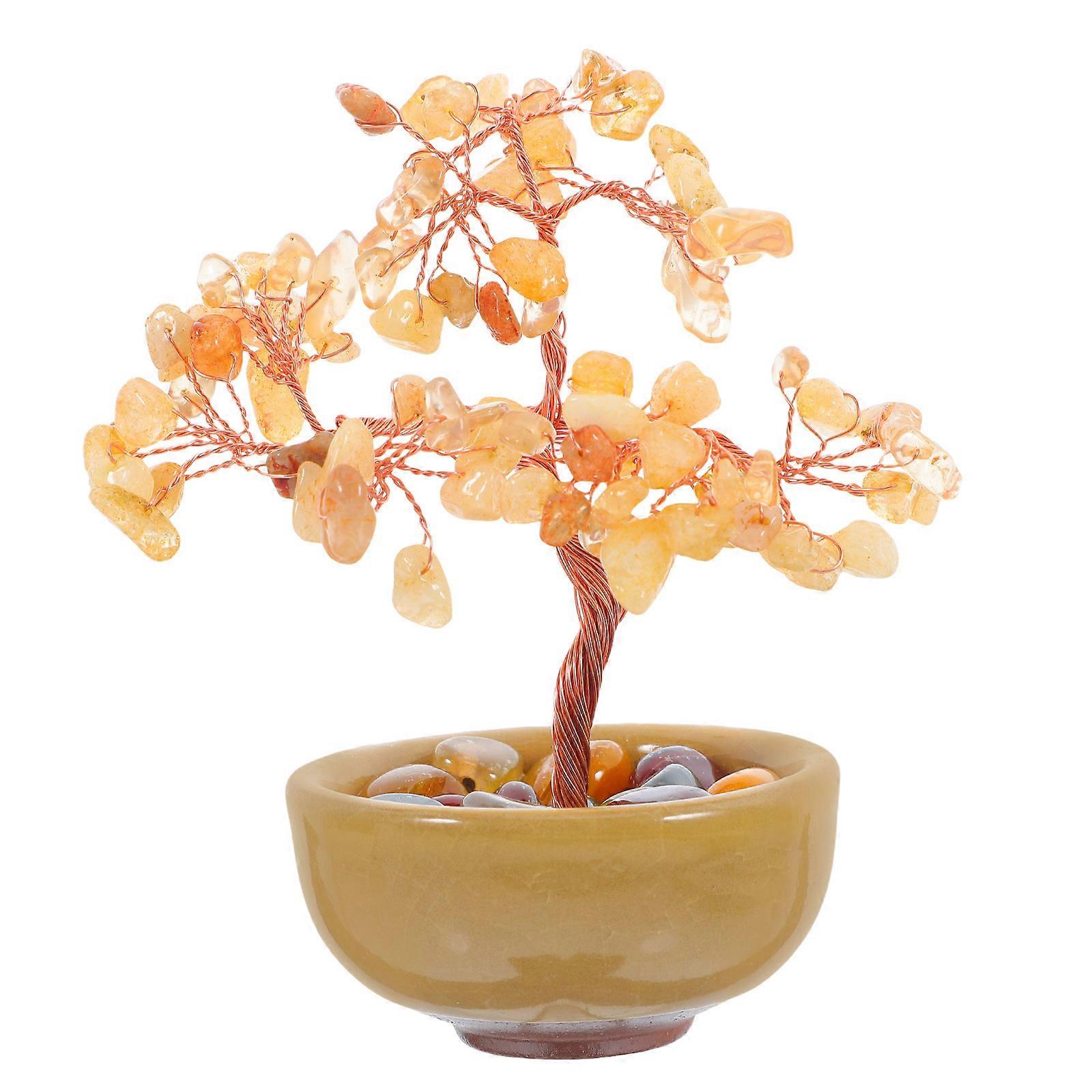 Natural Gemstone Money Tree Feng Shui Ornament For Friends Family 5Pcs Handmade Positive Energy