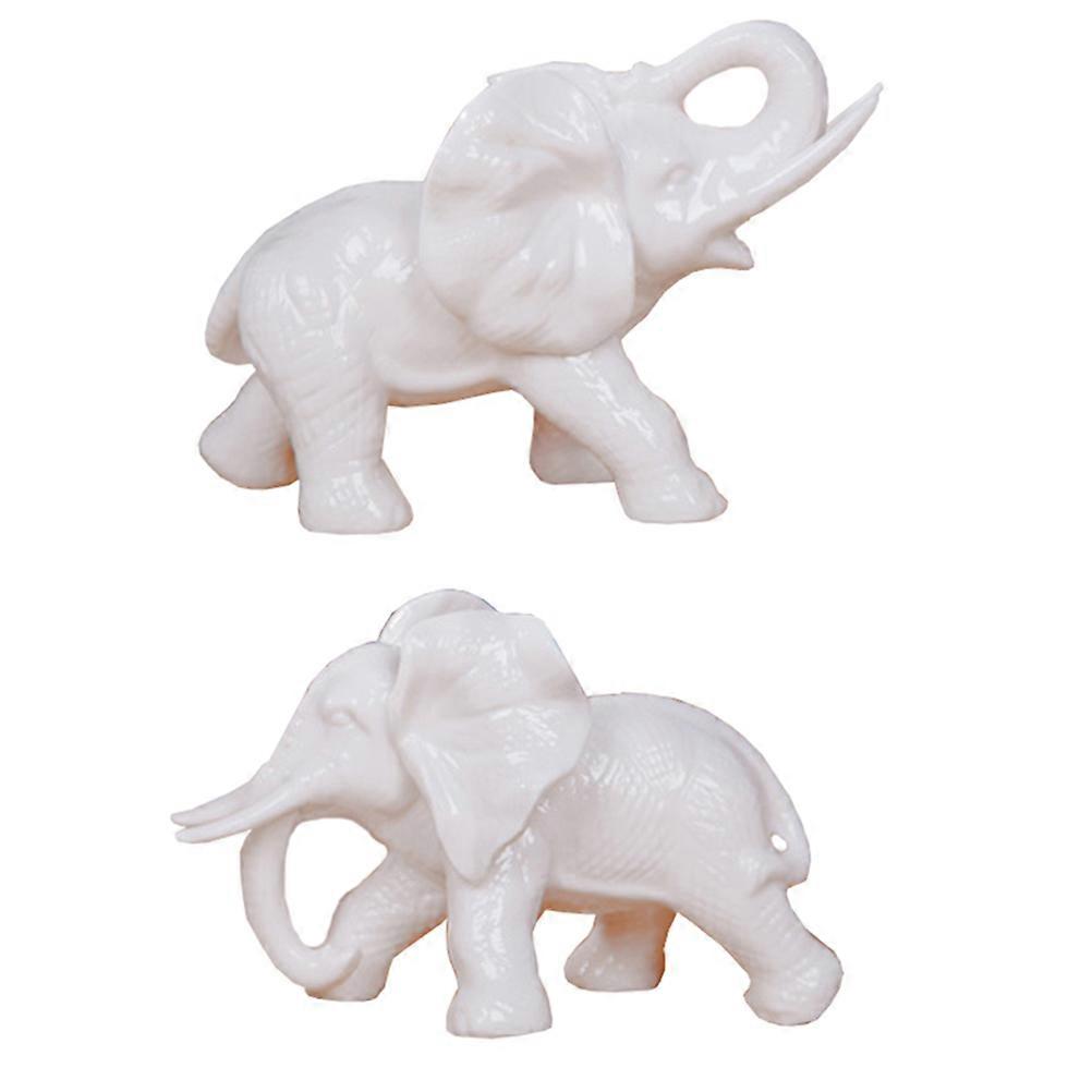 Ceramic Crafts Couple Elephant Figurines for Home Decoration 2Pairs White