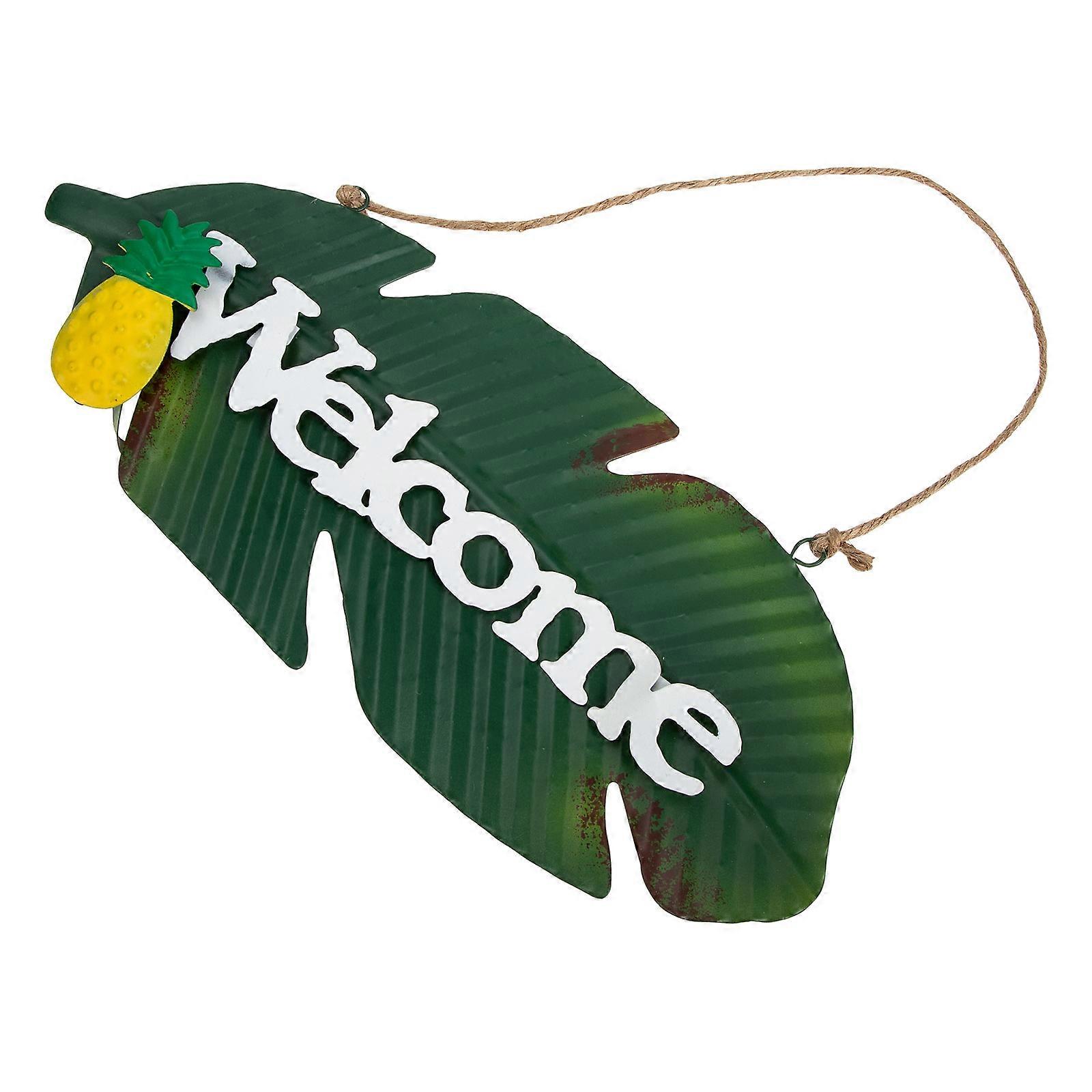 Welcome Door Hanger Iron Art Leaf Shaped Pendant Business Status Indicator For Shop Decor Front Door Wreath Assorted Color 1Set