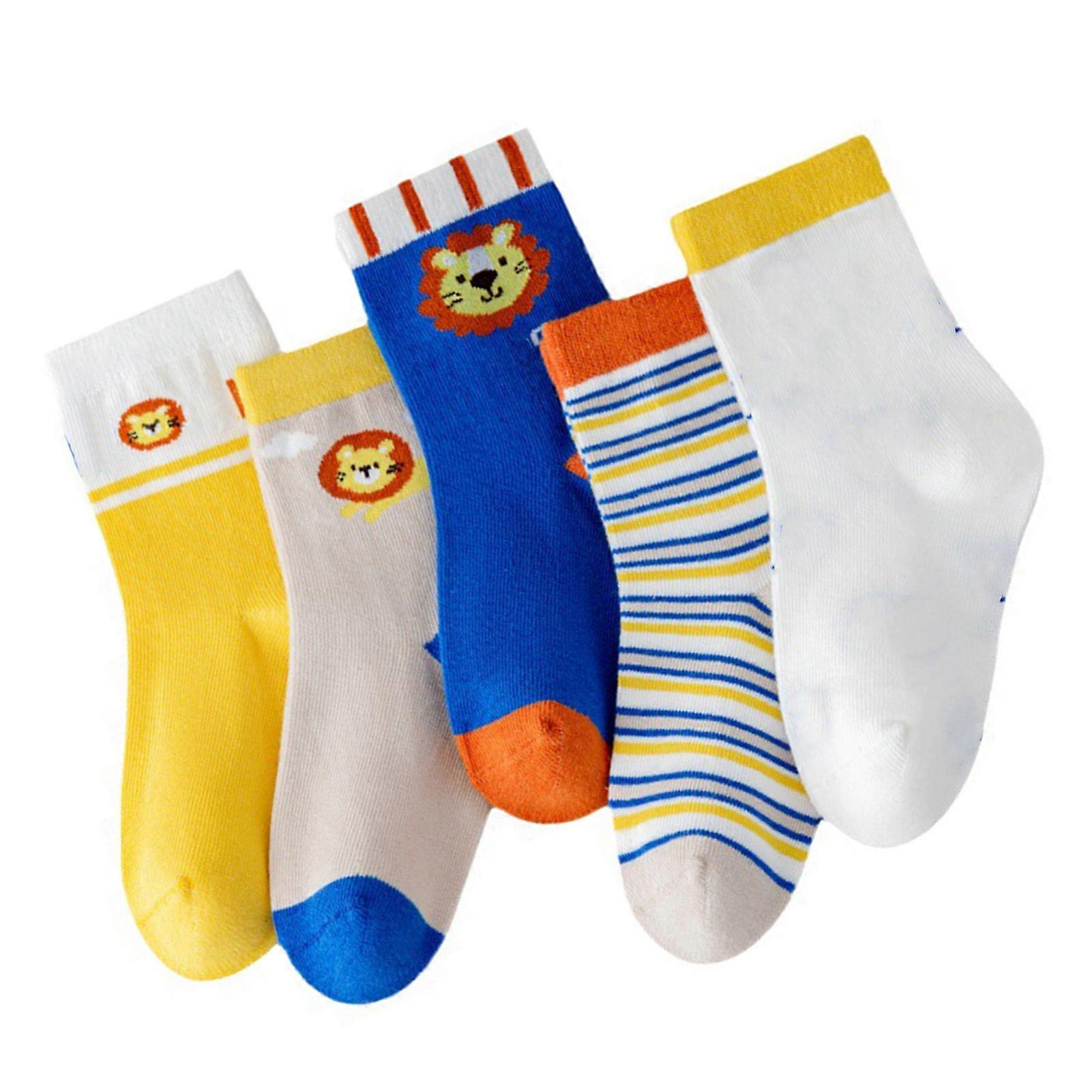 5 Pairs Cartoon Pattern Kids Sports Socks L for 6-8 Years Old