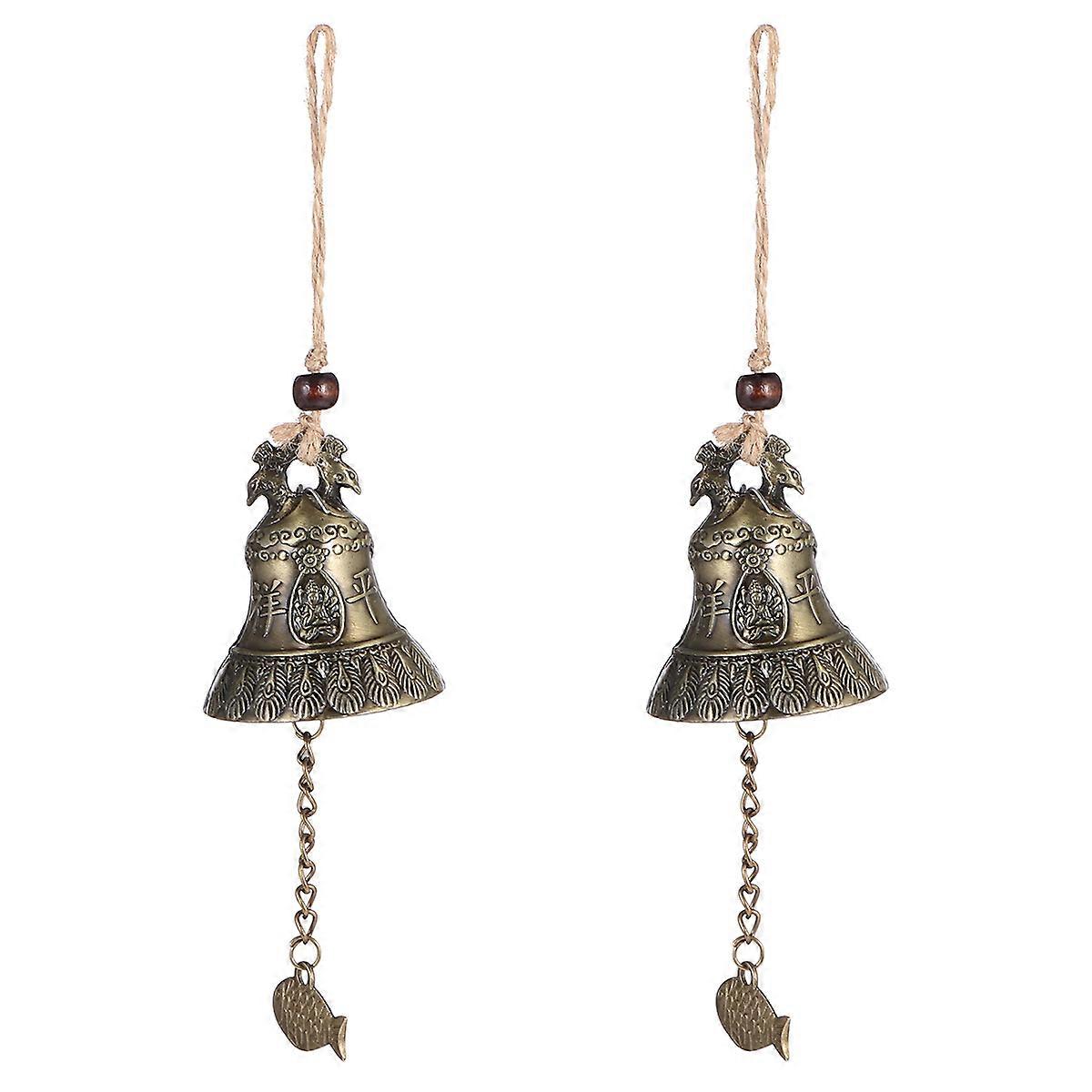 Peacocks Wind Chime Hanging Pendant Metal Bells for Decoration 4Pcs Dark Brown