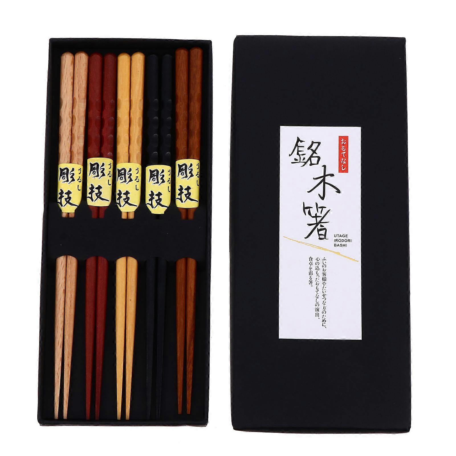 Wood Chopsticks 5 Pairs Japanese Style Tableware Home Restaurant Hotel Assorted Color Anti-Slip