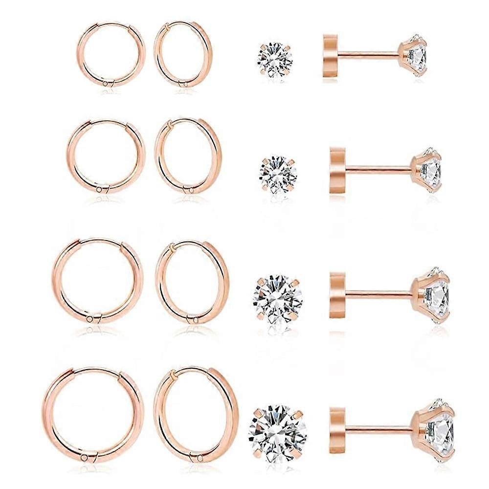 Cterwk 8 Pairs Women Earrings Sets, Lightweight 14K Gold Plated Multiple Piercing Hoop Earring, Flat Back Ball Stud Earrings for Women Men