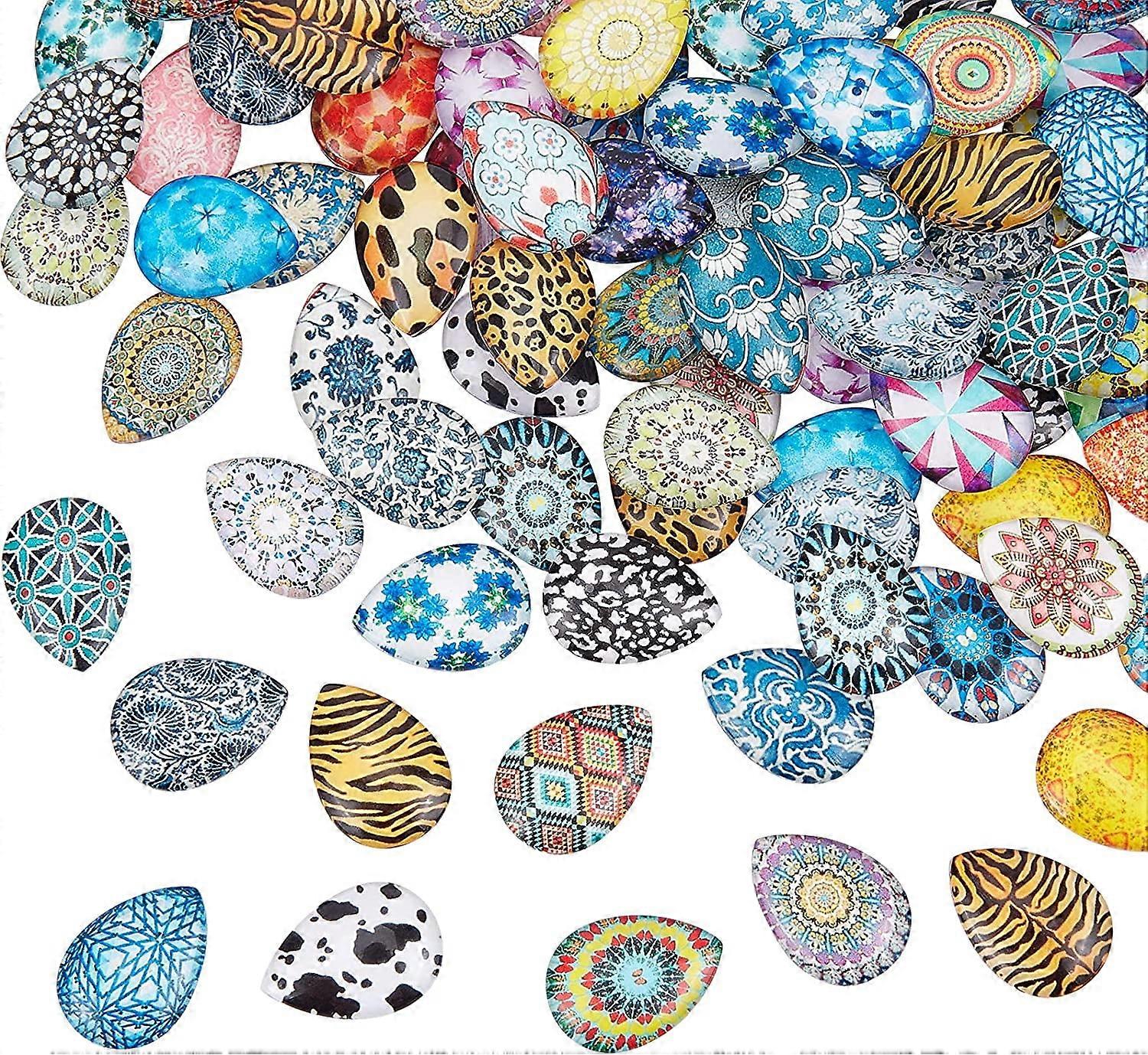 100pcs Mosaic Printed Glass Cabochons Mixed Color Drop Cabochons Mosaic Tile for Photo Pendant Jewelry Making