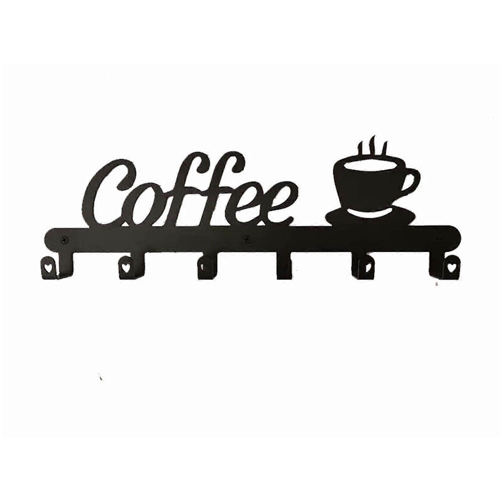ionze Tools Coffee Bar Decorative Sign, Wall Mounted Mug Holder & Storage, USA Metal Coffee Cup Holder (Black)