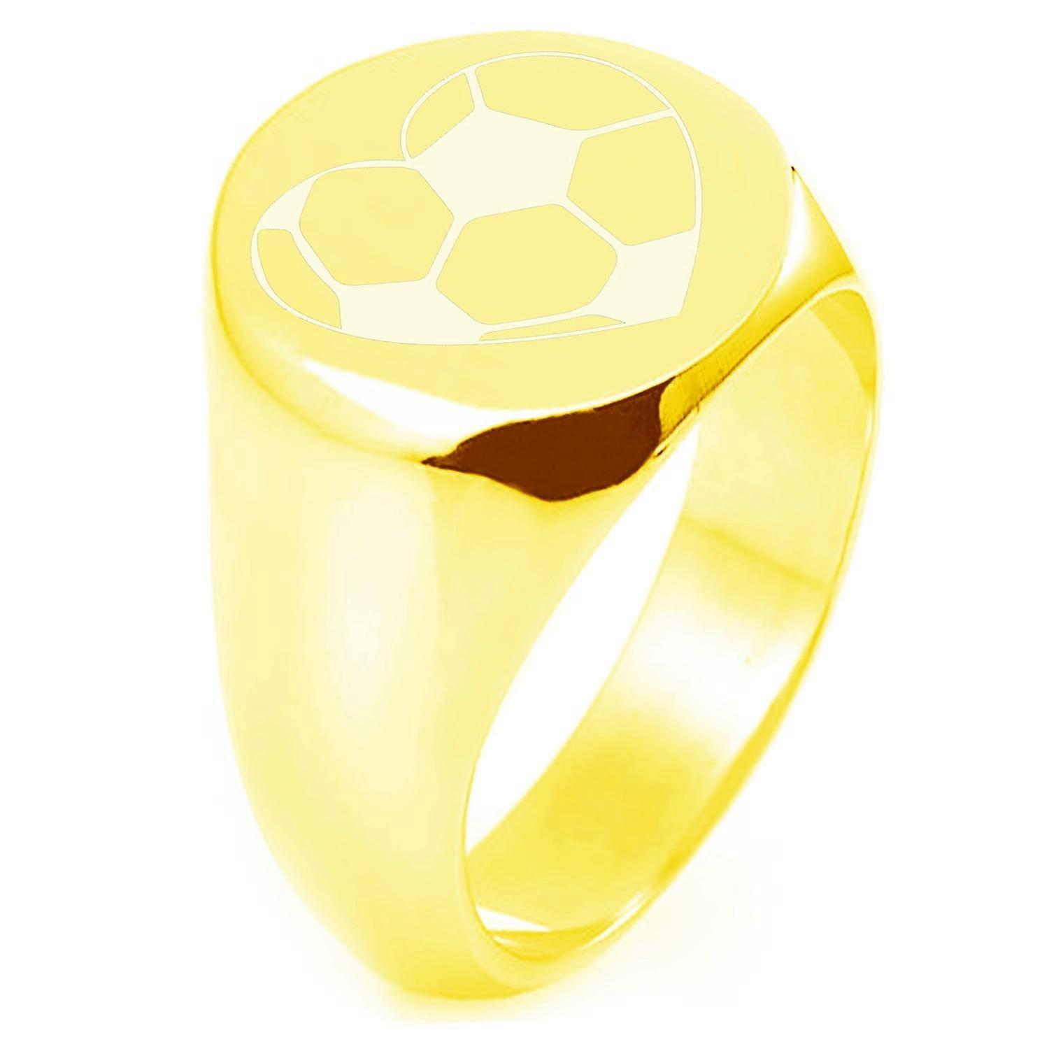 Sterling Silver Love Soccer Heart Engraved Round Flat Top Polished Ring
