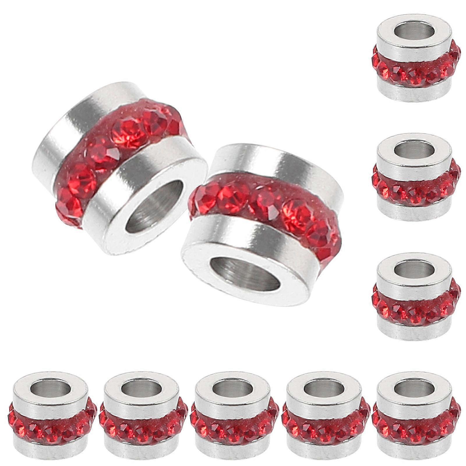 10Pcs Spacer Beads Rhinestone for Jewelry Making Red Alloy Charms
