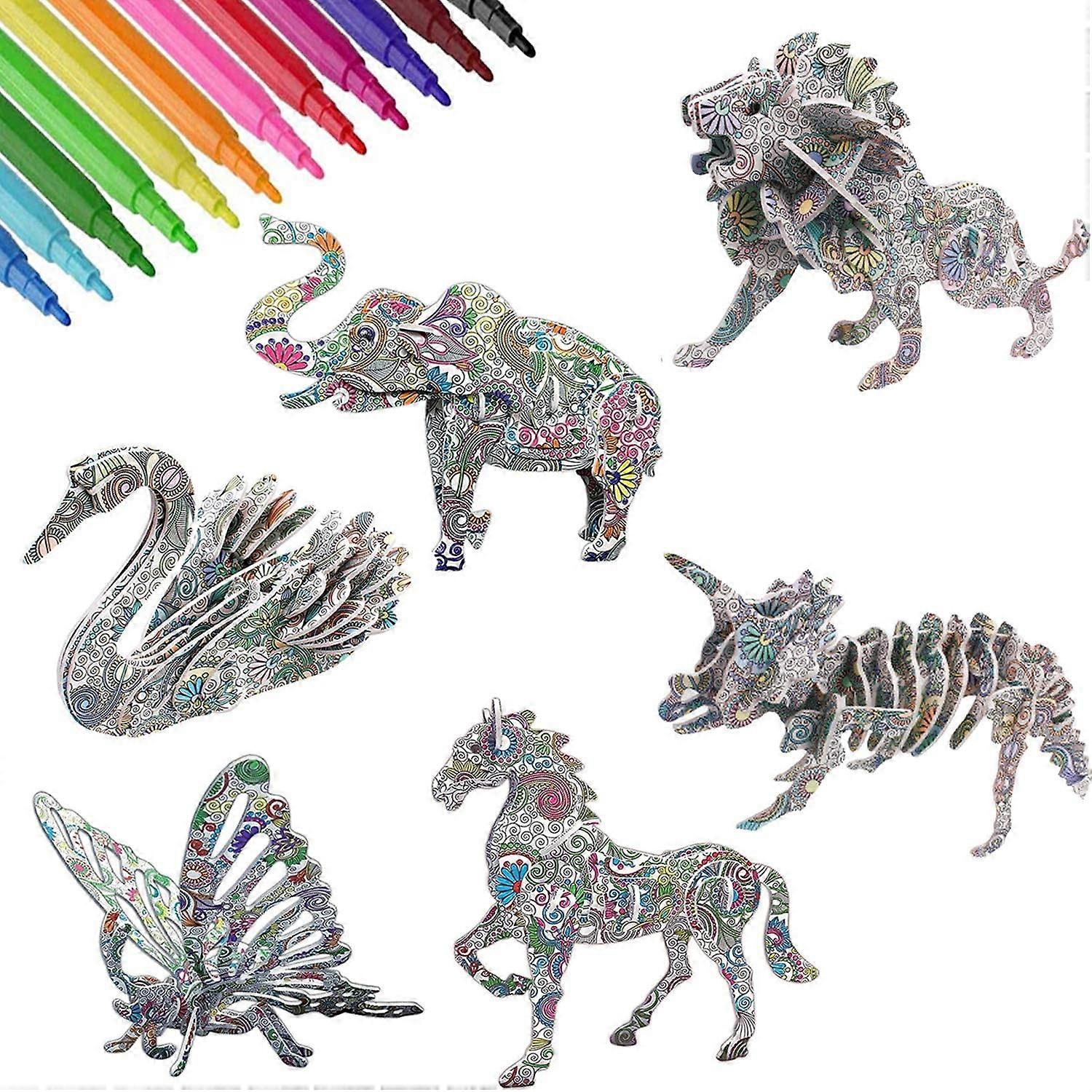 6 pcs 3D coloring puzzle set, it is a good christmas present for kids, 6 types with different design. The colorful puzzle set helps to enhance hand-eye coordination, improve fine motor skills, enhance memory, concentration, and creativity. Perfect for gifts teenage girls boys 13-15, it is a good gift for birthdays, Christmas or other occasions, as well as children's day gifts and Halloween gifts Children can assemble and color these puzzles by themselves for hours of creative fun Enhances hand-eye coordination, stimulates creativity, and improves motor skills Provides a sense of accomplishment through self-assembly and coloring Encourages communication and bonding between parents and children during play Suitable for both children and adults, making it a versatile craft activity