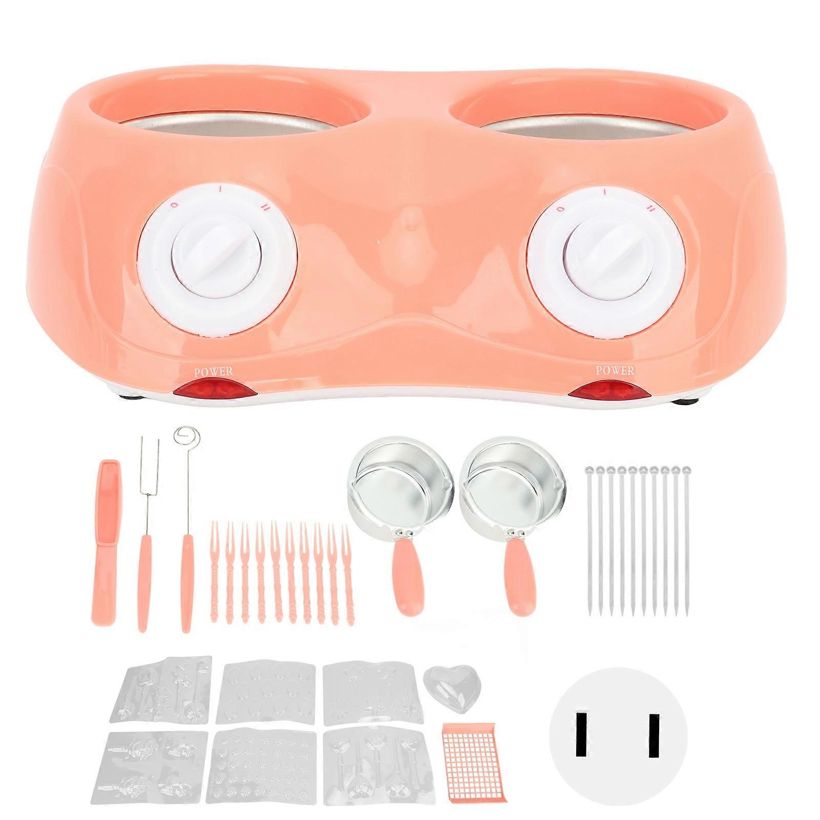 Electric Chocolate Melting Pot Double Fondue Melting Machine Kitchen Tool Pink 110-240V for Baking and Dessert Making