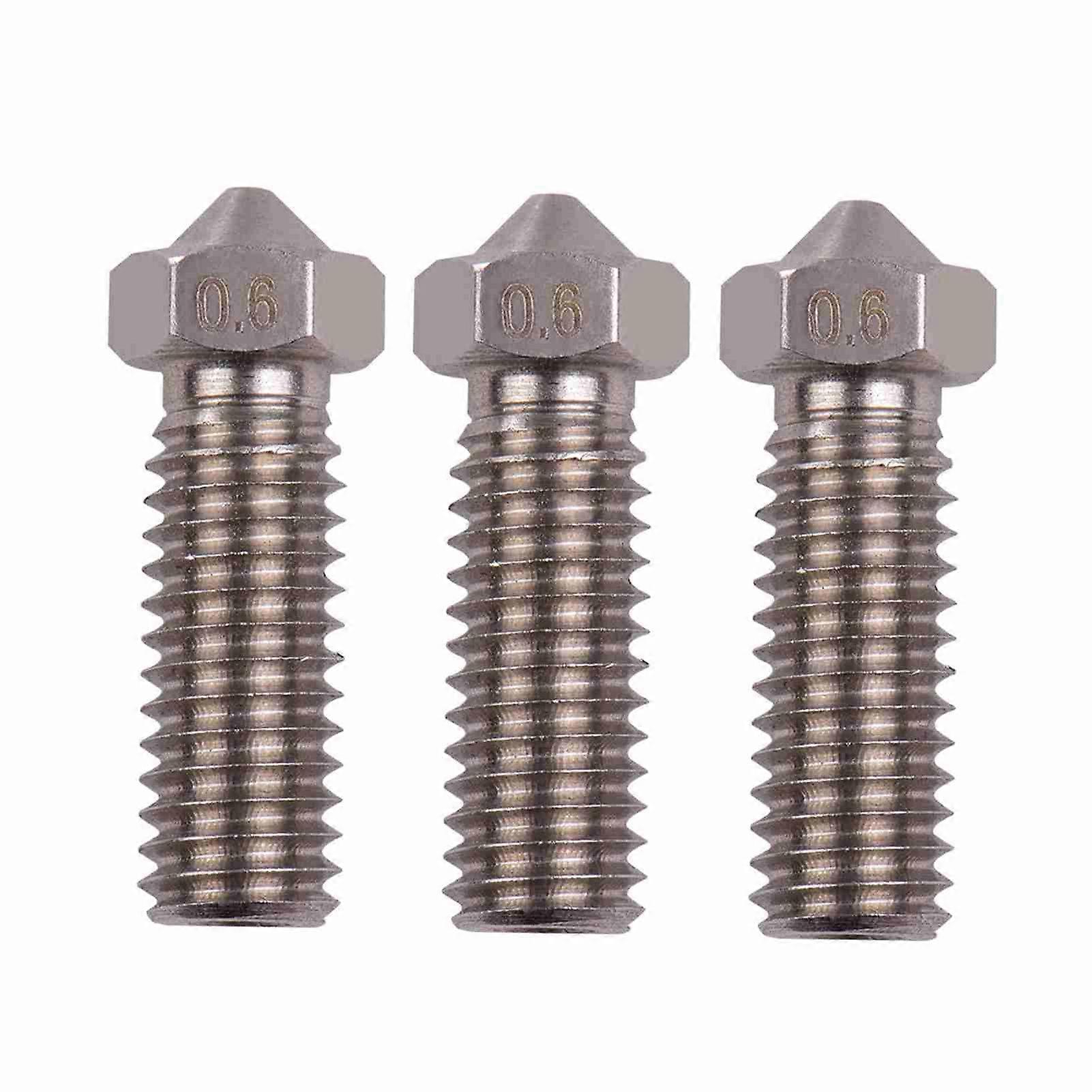 3D Printer Extruder Stainless Steel Volcano Nozzle 0.6mm M6 Thread for Sidewinder X1 TEVO Little Monster 1.75mm Filament Replacement