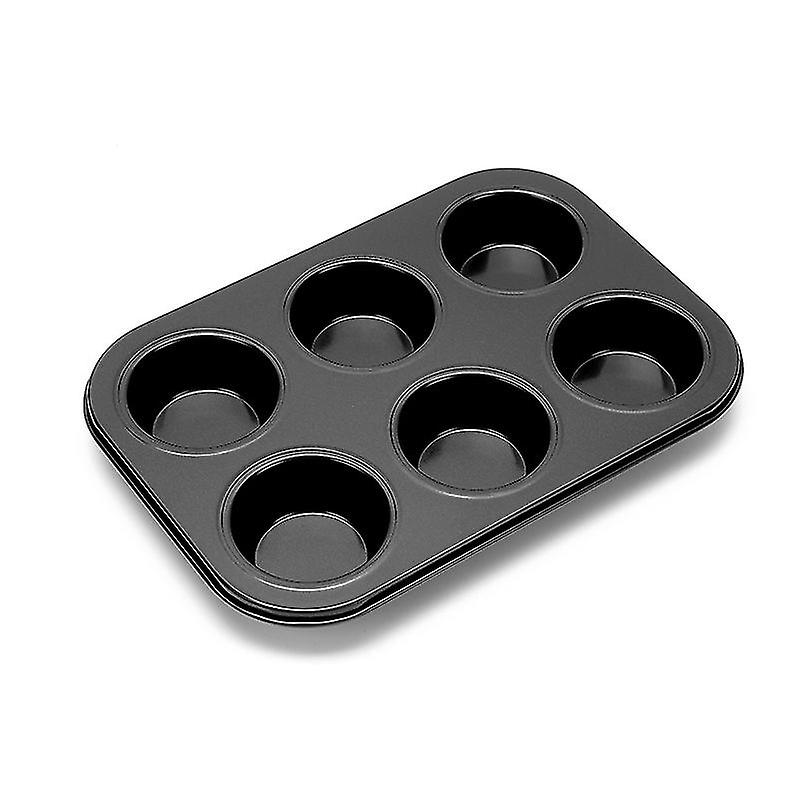 6-Cup Carbon Steel Cupcake Pan Non Stick Baking Tray Black Quick Release Muffin Tin for Home Kitchen Use