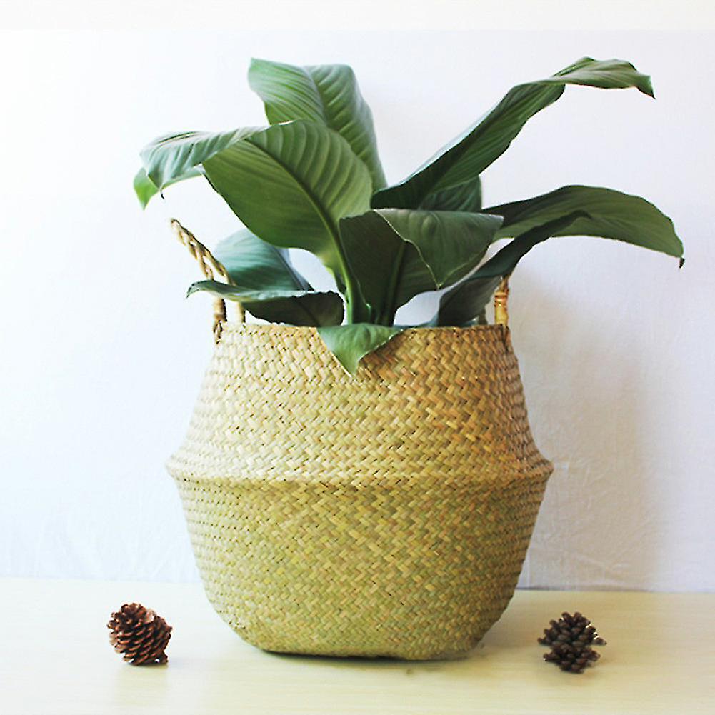 Woven Seagrass Flower Basket Braided Plant Pot Holder Desktop Storage Organizer Decorative Basket