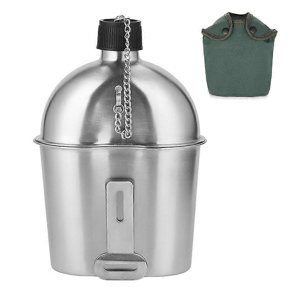 Stainless Steel Military Canteen Cup Set 1000ml 600ml with Cover Bag for Outdoor Camping Hiking Backpacking
