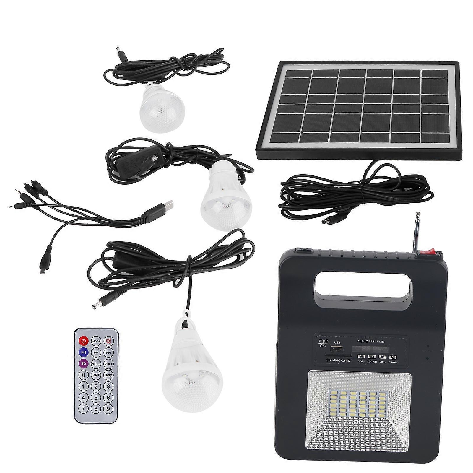 Portable Solar Generator Emergency Backup Battery with USB Charger FM Speaker Solar Panel and LED Bulb for Outdoor Camping