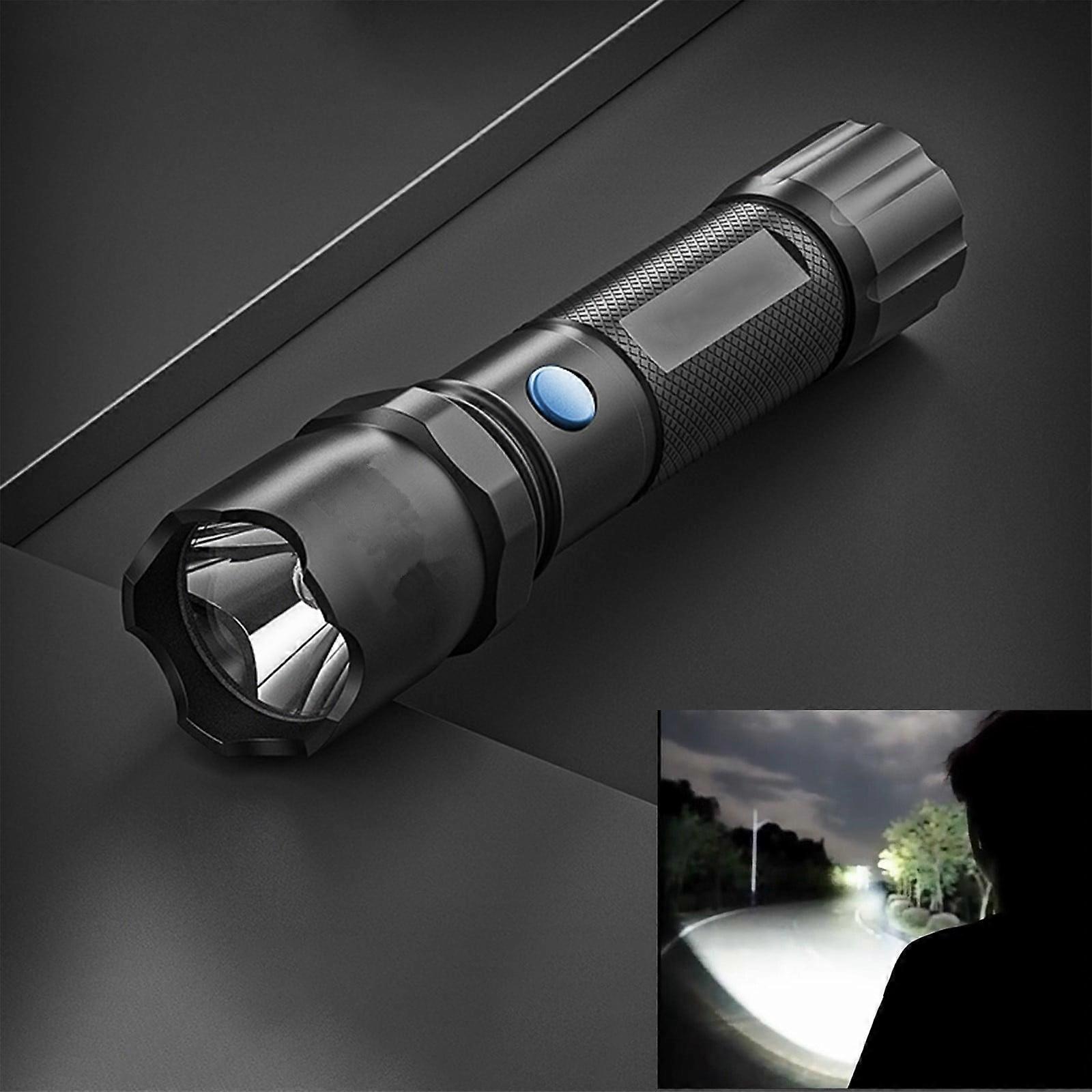 LED Flashlight,10000 Lumens Super Bright Flashlight, Zoomable, Rechargeable Flashlight With 4 Modes,, Powerful Handheld Flashlight Features: 【10000 Lumens Flashlight】LED flashlight has built-in upgraded M77 LED chip, and the brightness is 8 times that of ordinary chips. The usage time is more than 10000 hours, and the maximum brightness can attain 10000 lumens. Light up your room and patio with ease. 【4 Lighting Modes】Super bright flashlight has 4 light modes: low-medium-high-strobe. Easily on-off between different lighting modes at the press of a button. Meet your different lighting needs. Press and hold the power button for 2-3 seconds to turn off with one button, no need to cycle. 【Zoomable Flashlight】Rechargeable LED Flashlight. When used outdoors, it can meet the needs of viewing. It is the best rechargeable flashlight for your outdoor activities and night trips. 【IPX6 Flashlight】Waterproof flashlight is made of Waterproof plastic with IPX6 rating. The design allows it to be used in harsh environments such as heavy rain and snowstorm. At the same time, it is durable.And it can still operate normally even behind being rolled by a truck. 【USB Rechargeable Flashlight】Flashlights come with charging cables, which can be charged from laptops, power, car chargers and other devices with USB output ports.3,500mah large capacity battery, in an emergency can power the phone Product Description+: Product: Long range light Color: Black Material: ABS Battery capacity: 1600mA Input: 5V/1A Luminous efficiency: 1000Lm Waterproofs class: IPX5 Package size: 16×4×4cm/6.29×1.57×1.57in Product size: 15.3×3.3cm/6.02×1.29in Product weight: 74g/0.163lb Gross product weight: 90g/0.198lb Package Content: 1 x Long range light 1 x Charging cable 【❤Welcome to Fanshiluo ❤】 【Shop All Flashlights】-LED Flashlight,Mini Flashlights,Rechargeable Flashlight,Camping Flashlight. 【Better Experience】Using high-quality lamp beads, the illumination distance reaches 100 meters, meeting the needs of most scenes. 【Excellent Materials】-Using high-strength materials, wear-resistant and impact resistant, with longer service life.. 【Great Gifts Ideas】-Excellent gifts choice and very suitable for traveling,camping.