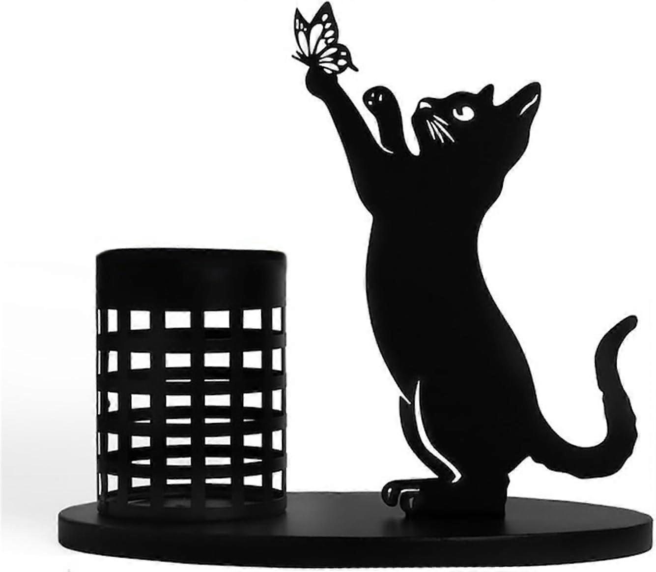 Cute Cat Pen Holder for Desk, Metal Pencil Organizer & Home Decoration, Black Cat Gift for Cat Lovers, Office Supply