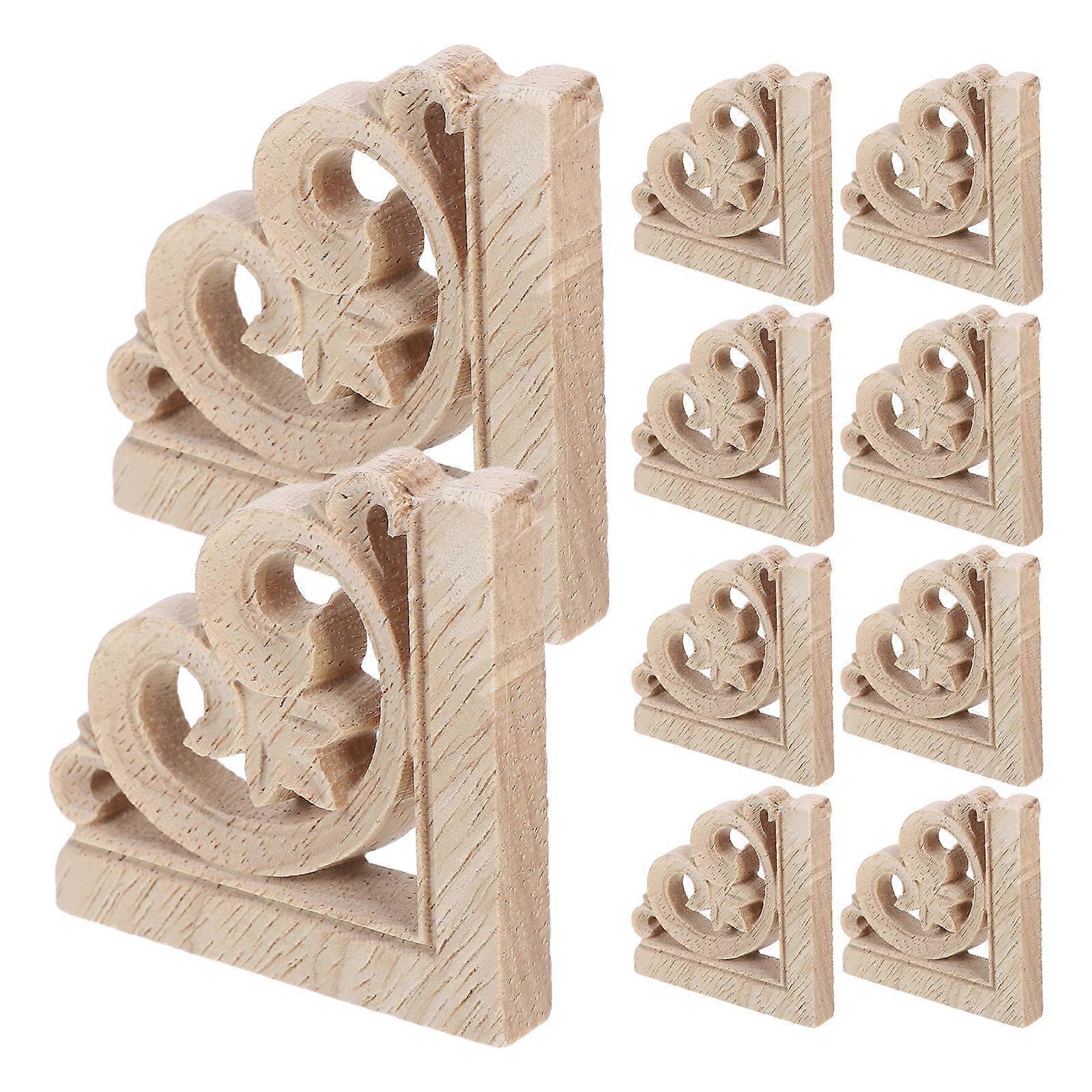 10Pcs Wood Carved Corner Onlays Furniture Applique Suitable for Cabinets Doors Frames Khaki Decorative Trim Easy Installation
