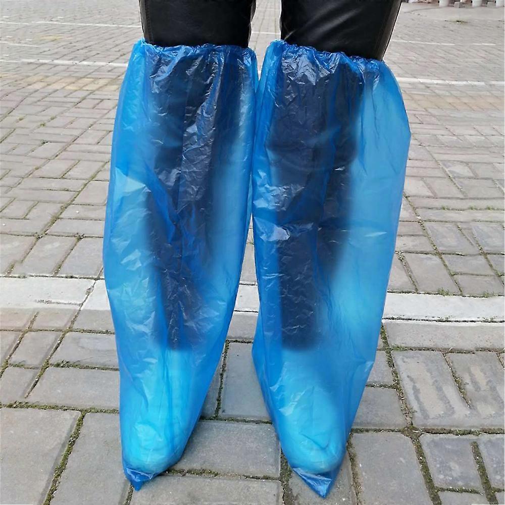 Disposable Blue Shoe Covers 1 Pair Waterproof Long Rain Boots Overshoes Anti-Slip for Men Women Hiking Traveling Outdoor Use