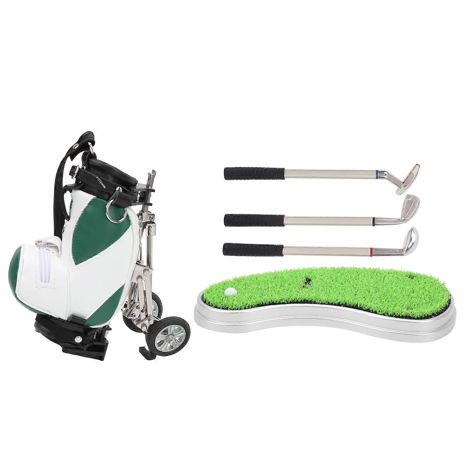 Desktop Golf Pen Set 3 Ballpoint Pens with Mini Zinc Alloy Golf Bag and Base Green White Stylish Office Gift