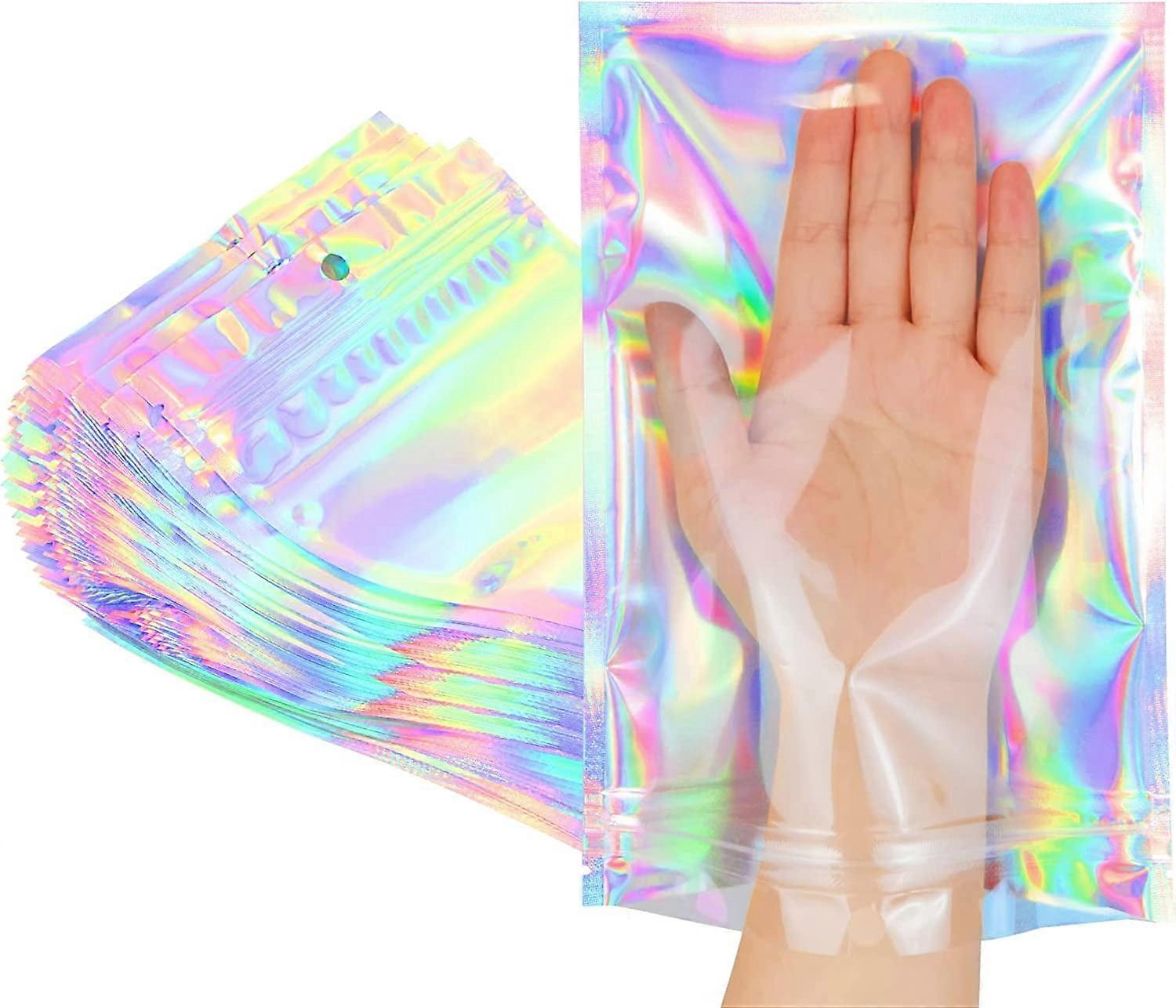 Smell Proof Bags & Resealable Foil Pouch Mylar Sample Bag Great for Party Favor Food Storage (Holographic Color) (100pcs-6x9 inch)