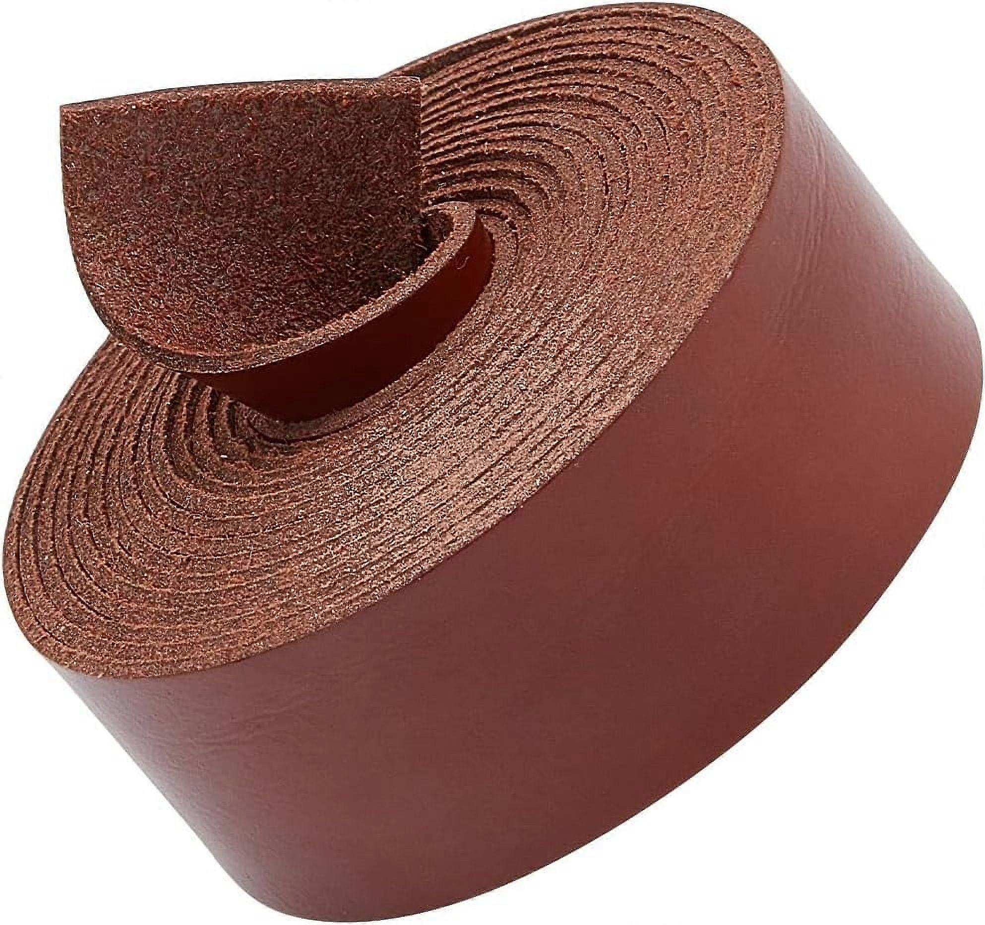 25mm Wide Genuine Leather Strips 200cm Long, Full Grain 1.2mm Thick Glossy Flat Cord for DIY Crafts, Jewelry, Belts, Furniture Handles - Saddle Brown