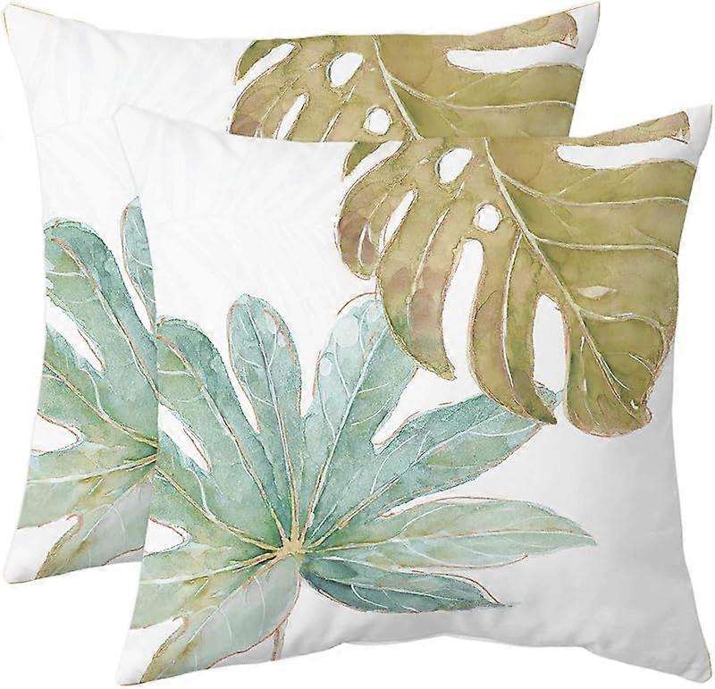 Olive Green Tropical Leaf Throw Pillow Covers Decorative Botanical Banana Leaves Couch Pillow Cases Farmhouse Outdoor , 18" x 18",Set of 2