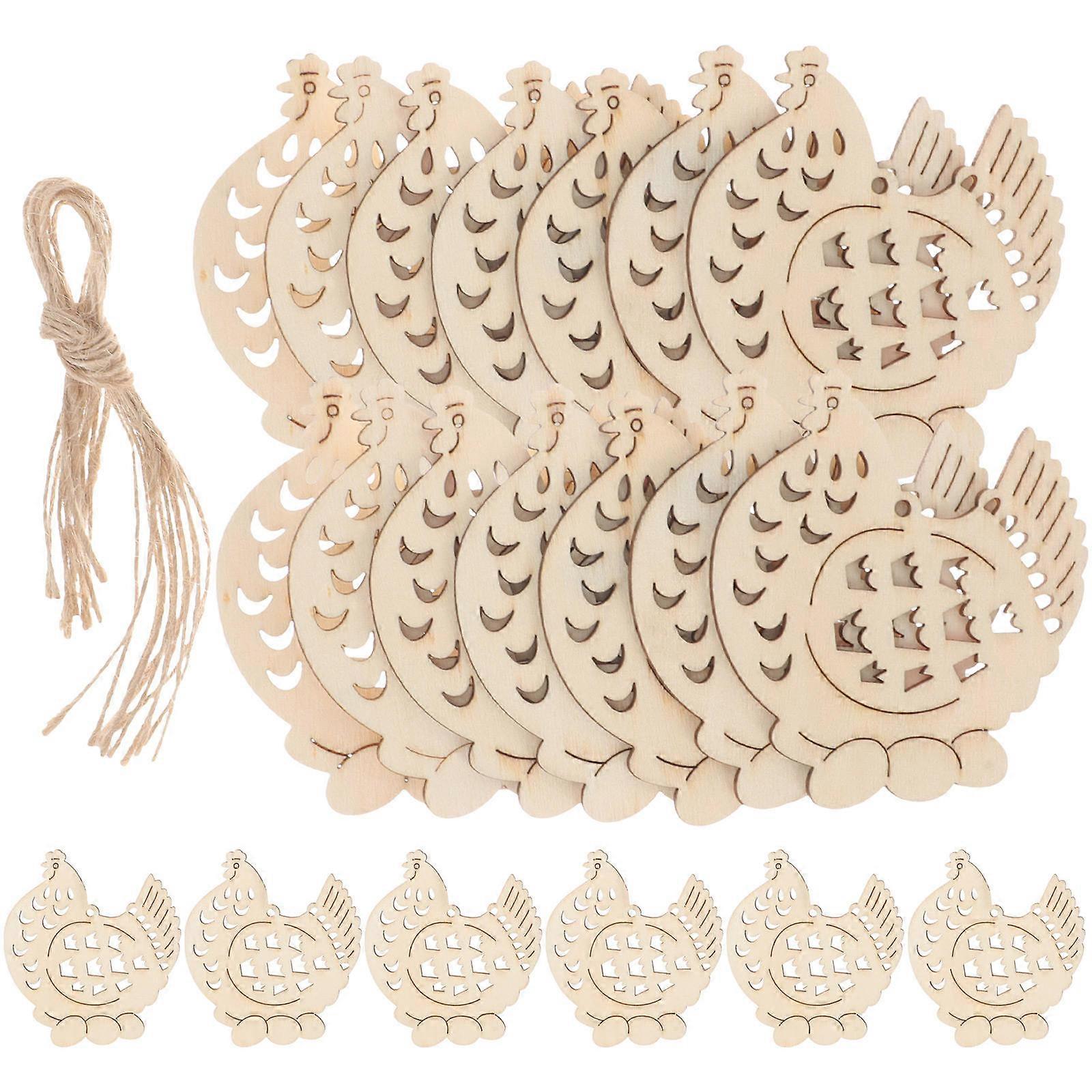 Wooden Chicken Slices 20Pcs Decorative Pendant For Easter Holiday Celebrations 8X7Cm Beige DIY Decoration