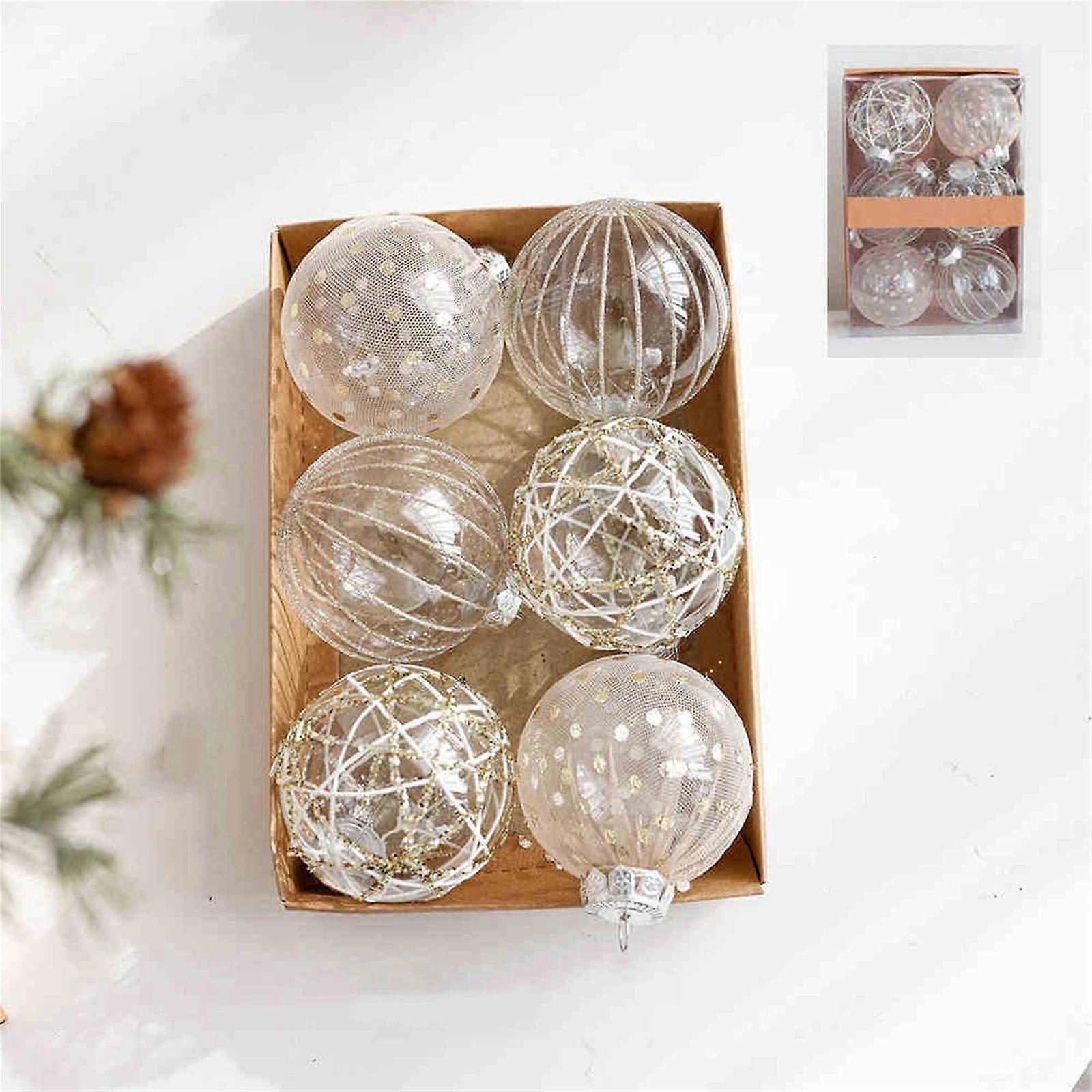 6pcs 80mm Clear Glitter Christmas Ball Ornaments, Compatible with Christmas Tree Hanging Pendants, Window Wind Decor