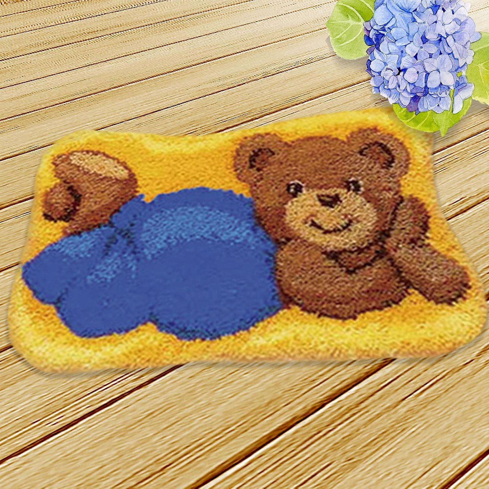 , Cartoon Pattern Printed DIY Crochet Yarn s, Embroidery Decoration 50x36cm , Bear Blue