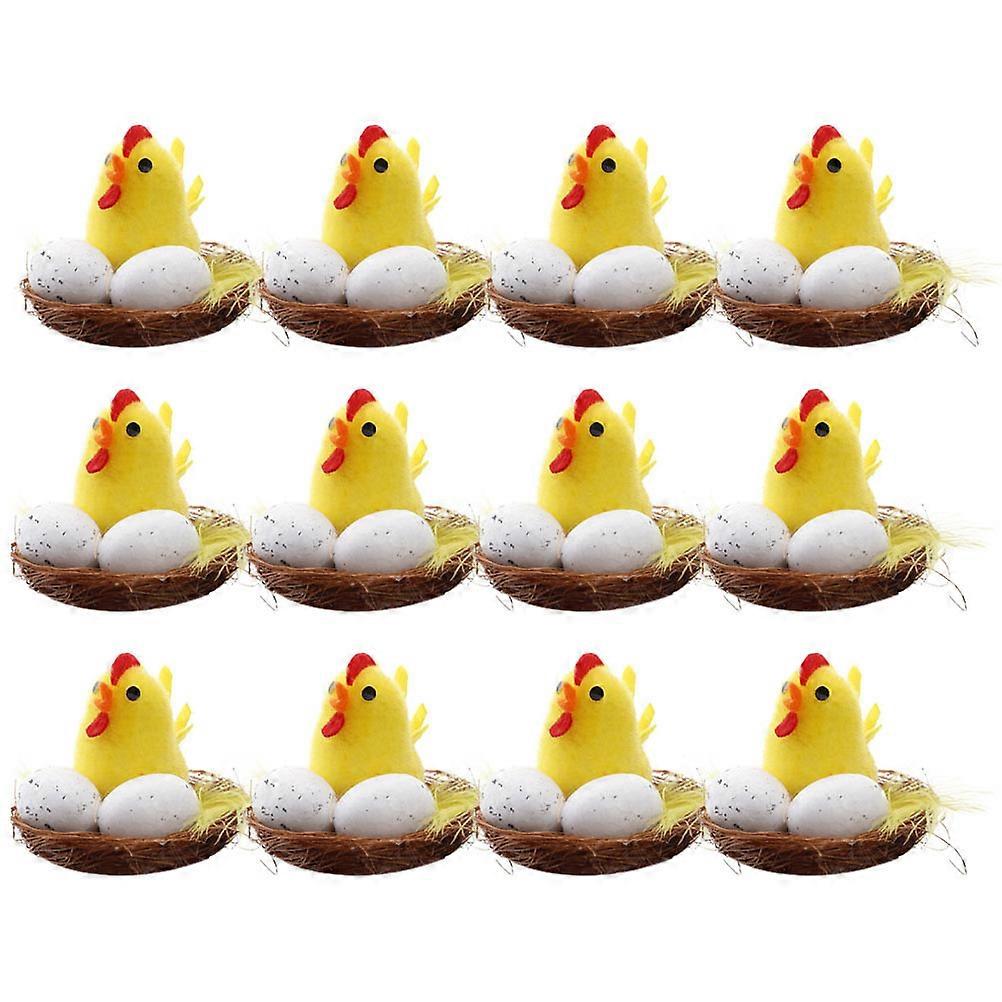 Mini Chick Ornament 12Pcs Yellow Plastic Children's Toy for Decor with Fade-Resistant Quality