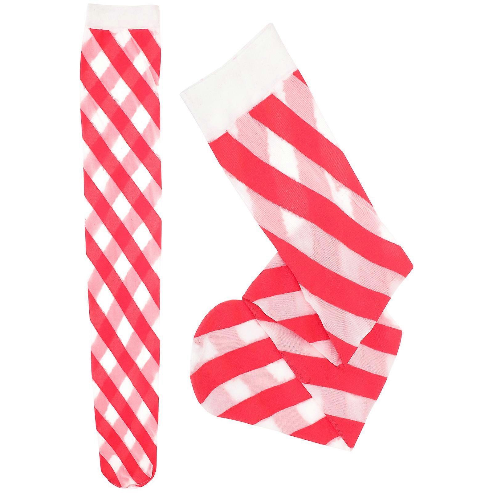 Red Xmas Thigh High Long Stockings for Decor 2Pairs Striped Over The Knee Socks