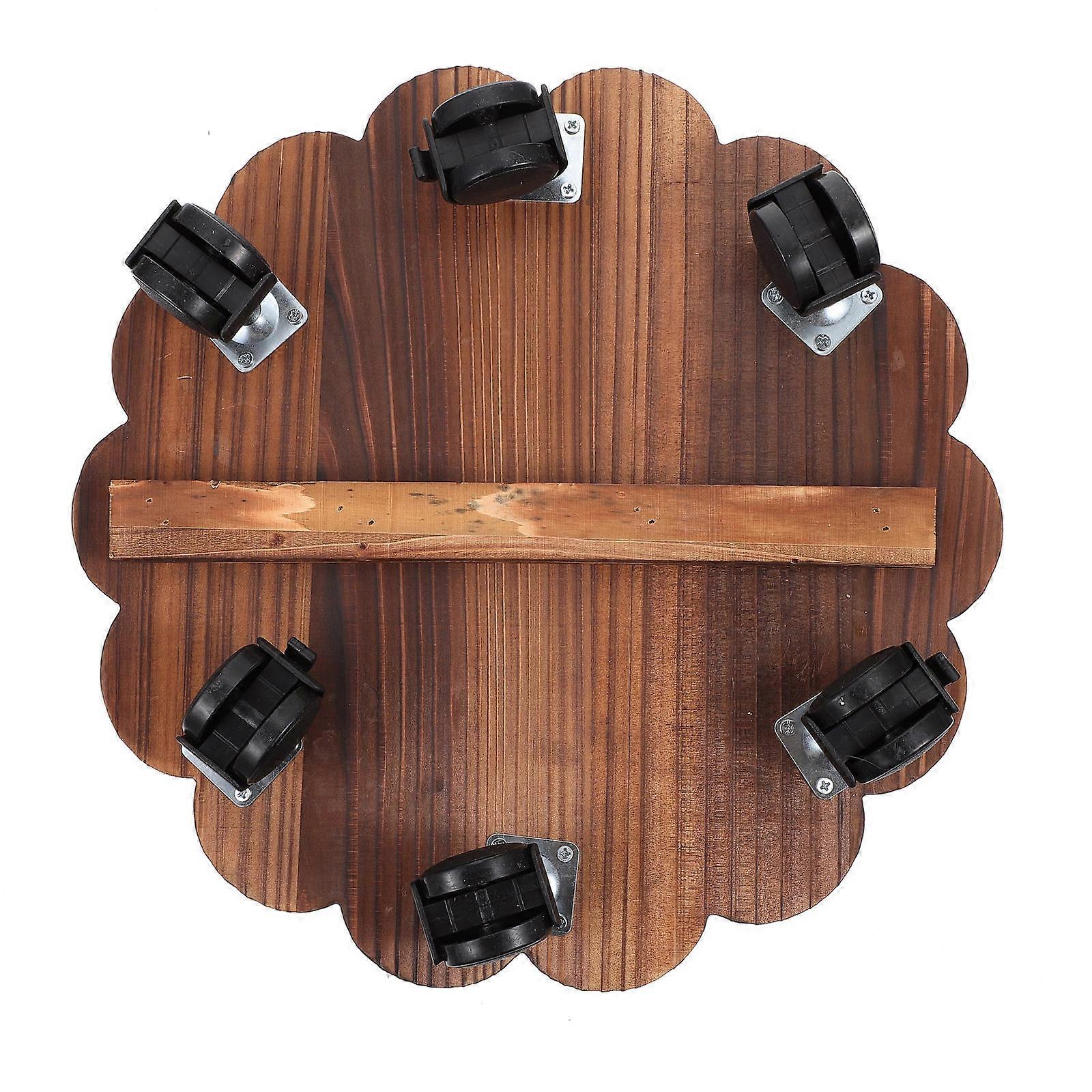 Movable Flowerpot Holder Tray Wood with Universal Wheels 2Pcs Coffee