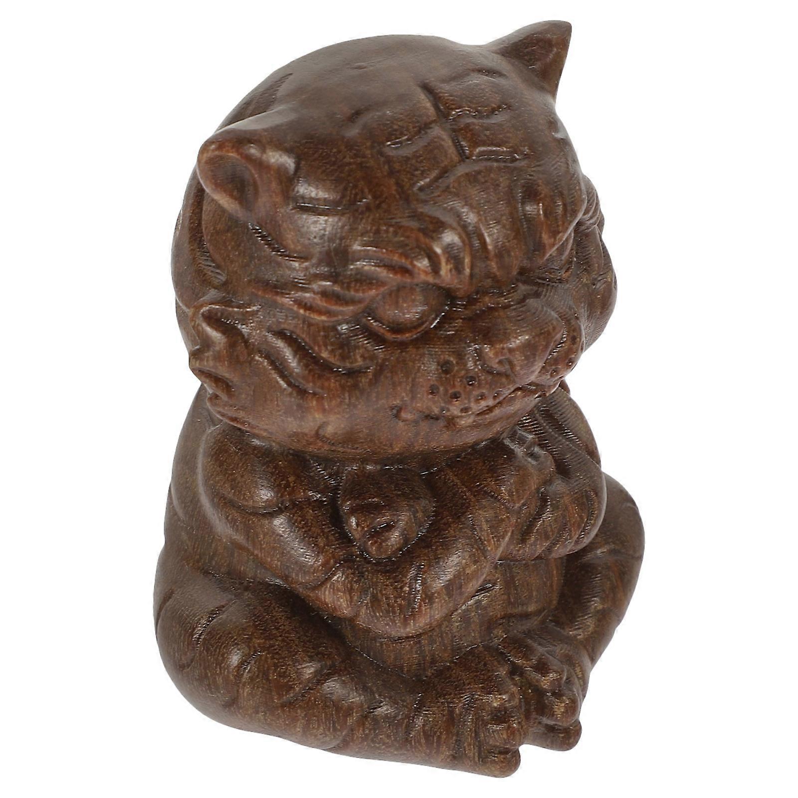 Tiger Design Handicraft Wood Carved Animals Ornament Bedroom Living Room Decor 5.50X3.80X3.50CM 1Pcs