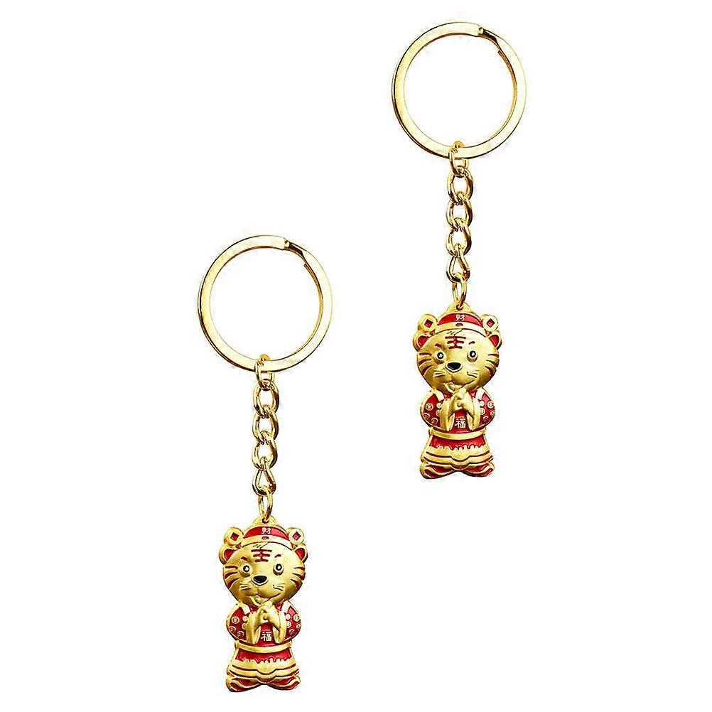 Tiger Key-Chains 2Pcs Golden Zine-Alloy Rust-Resistant Craftsmanship Key Decorations for Decoration