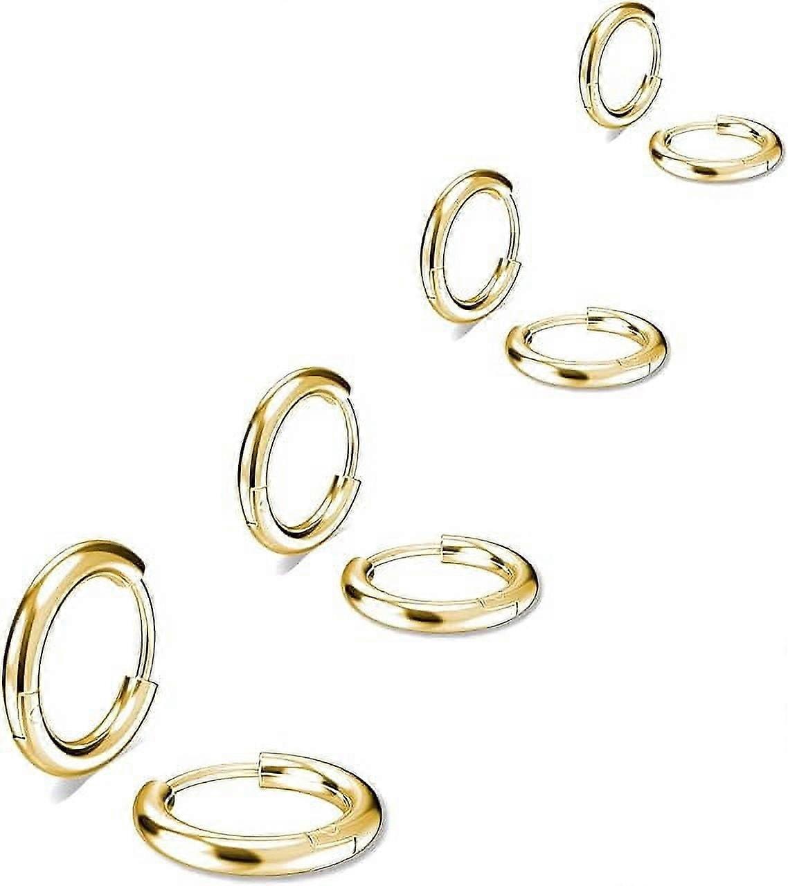 Cterwk 4 Pairs 14K Gold Plated Huggie Hoop Earrings for Women Men, Minimalist Gold Huggie Hoop Earrings, Gold