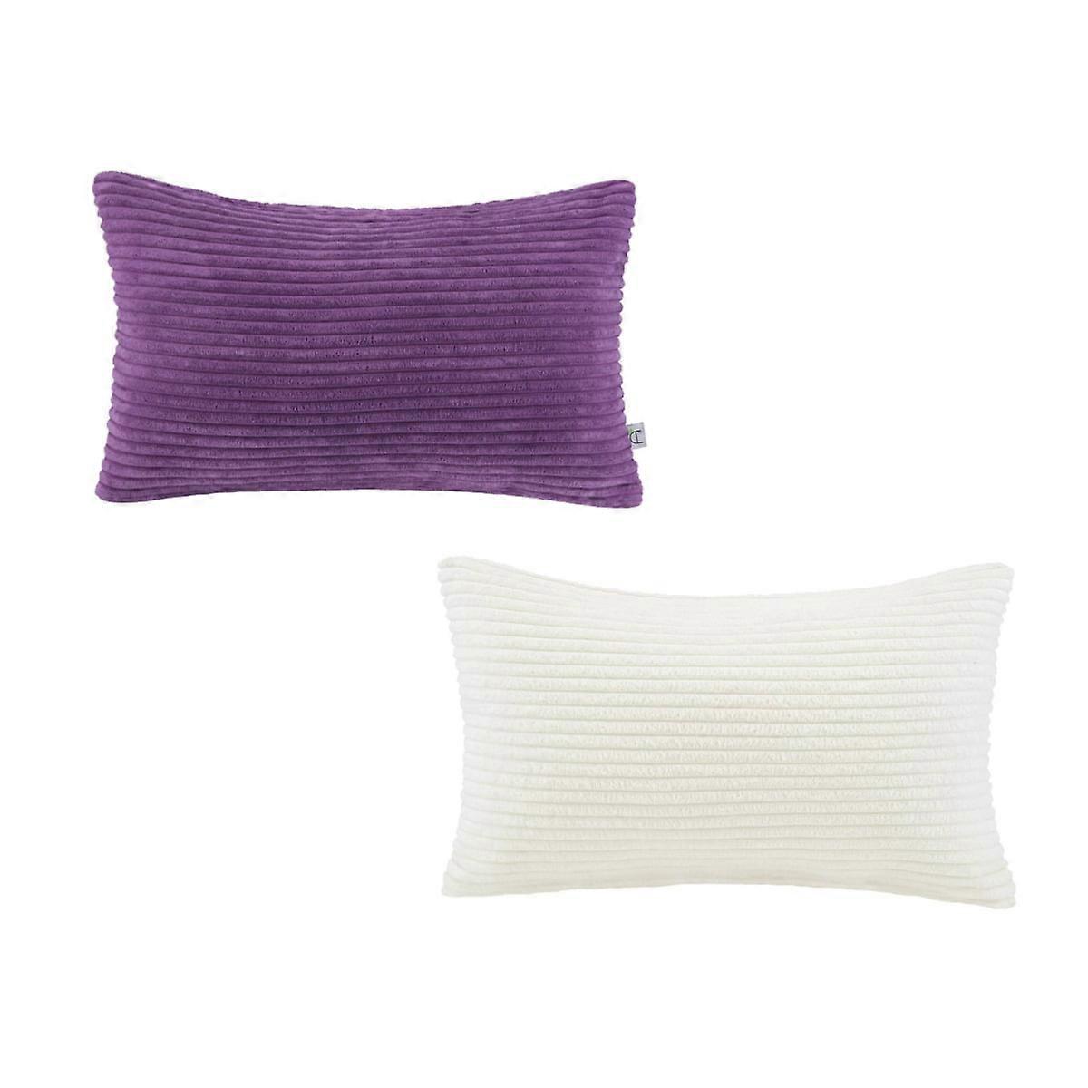 Phantoscope Halloween holiday Fluffy Corduroy Velvet Series Decorative Throw Pillow Covers, 12" x 20", White and Purple, 2 Pack