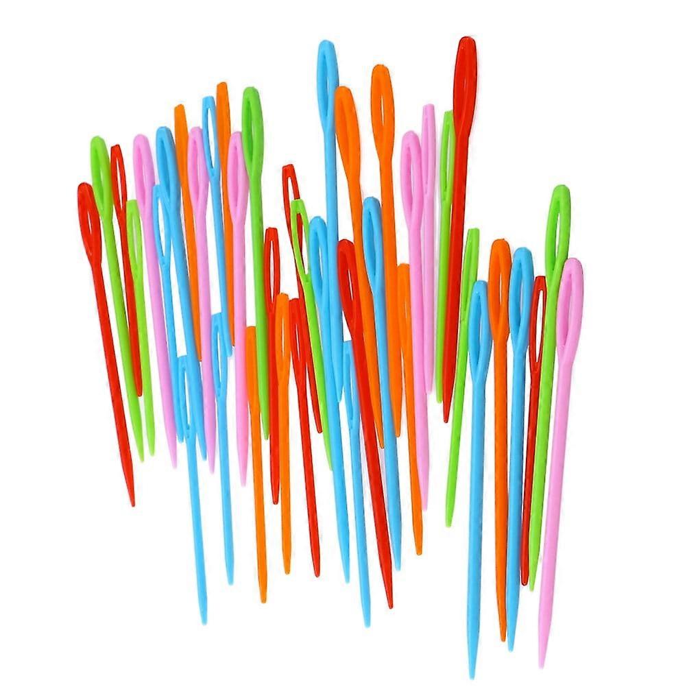 100pcs Plastic Sewing Needles Colorful Large Holes Weaving Needles for Kids (7cm Random Color)