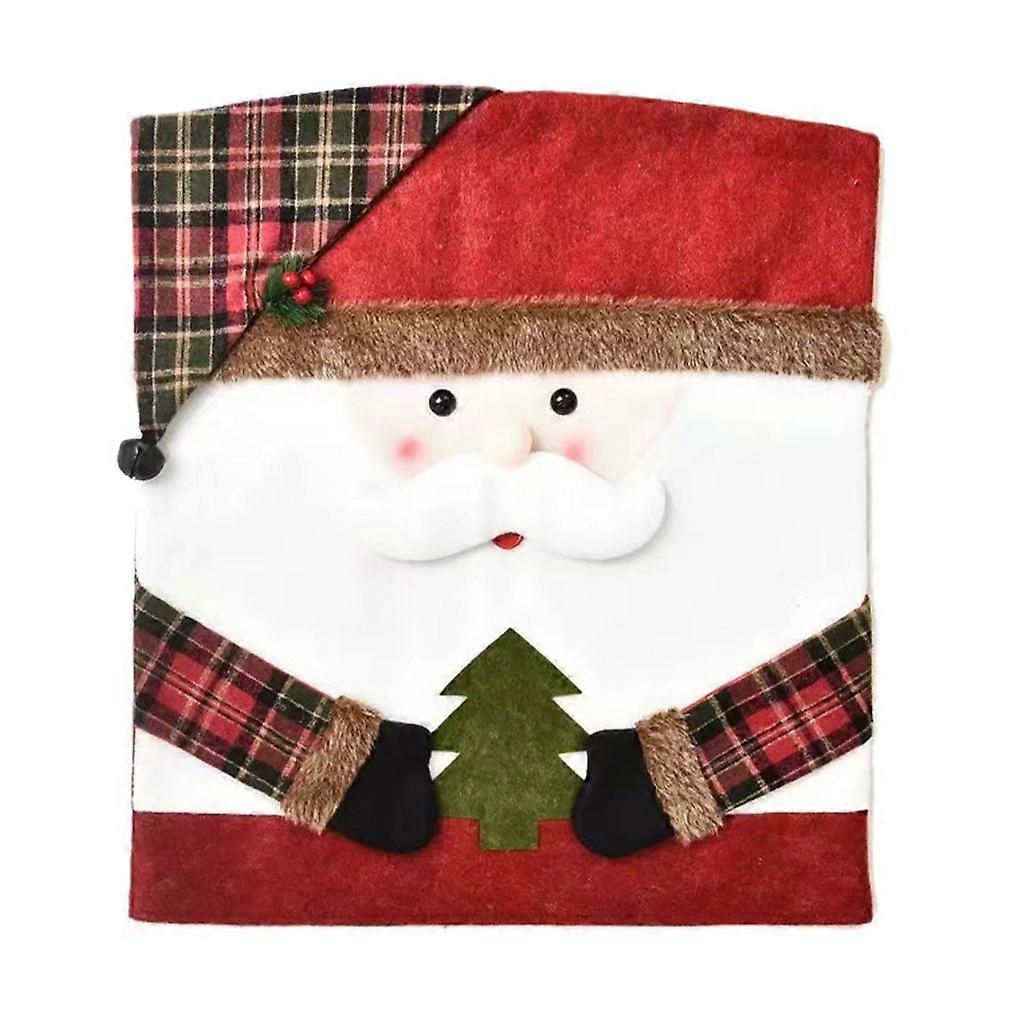 3D Xmas Chair Cover Cartoon Grid Pattern Antimacassar Slipcover Party Favors