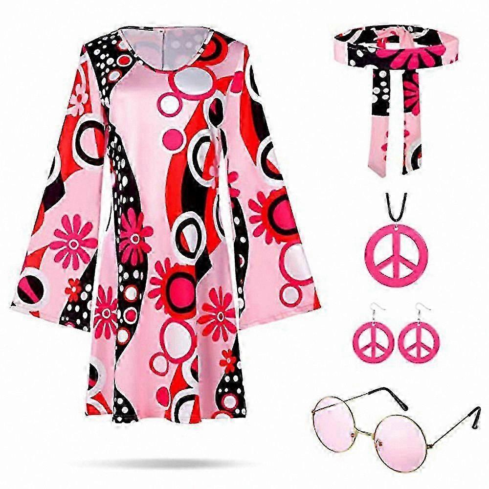Quality Craftsmanship: Crafted from durable metal, this peace sign jewelry set undergoes meticulous polishing and plating, ensuring resistance to fading, corrosion, and breakage. The shiny metallic lusters under lights add an extra touch of elegance. Perfect Sizing: The earrings have a 1.5-inch/3.8 cm diameter, while the necklace pendant measures 2.6 inches/7 cm. These ideal sizes effortlessly capture attention, making this stylish jewelry set a standout accessory for any occasion. Vibrant Coordination: The polyester headband and retro flower dress feature a cohesive design and color scheme. Designed for comfort, softness, and stretch, they suit individuals of all ages, offering a charming and vibrant ensemble. Versatile Occasions: Ideal for Halloween, Valentine's Day, carnivals, masquerades, parties, and more, these disco costumes enhance your style. Suitable for various events, from nightclubs to weddings, they help you stand out and make every occasion memorable. Spotlight-Worthy Style: Showcase your unique taste with bright colors and a peace sign design. Whether at parties or in everyday wear, this disco outfit radiates elegance, charm, and confidence, making you the center of attention in any crowd.