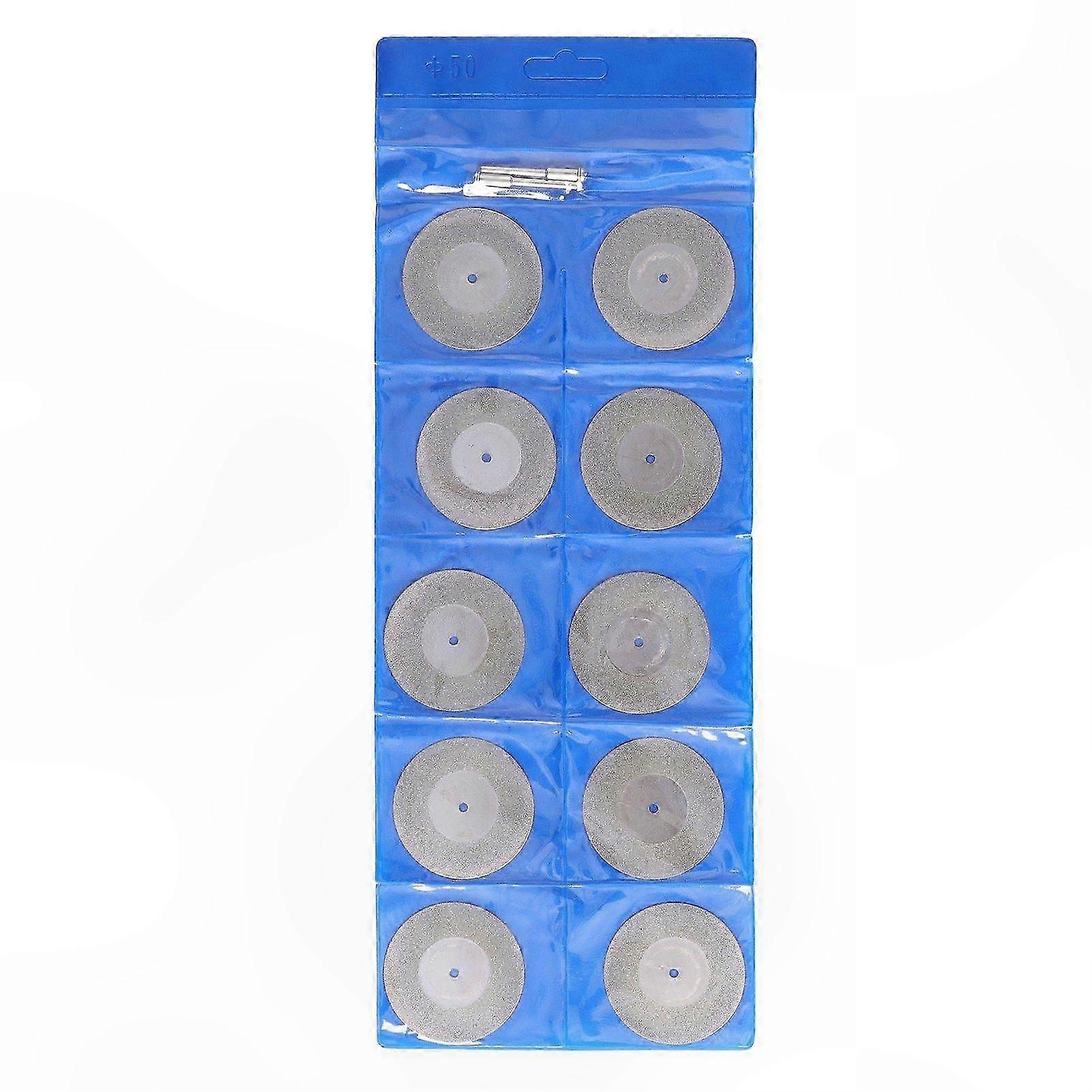 10 Pack Thin Diamond Cutting Discs with Rod for Wood Metal Stone 50mm / 2in Round Sanding Wheel