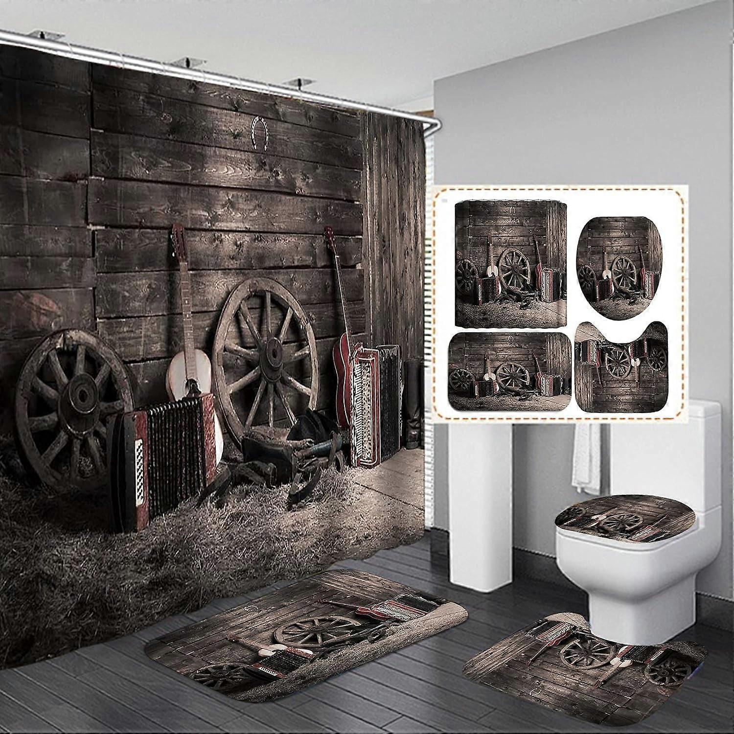 4PCS Black White Leopard Shower Curtain & Music Notes Safari Animal Pattern Non-slip Bath Rugs, Toilet Mats Set